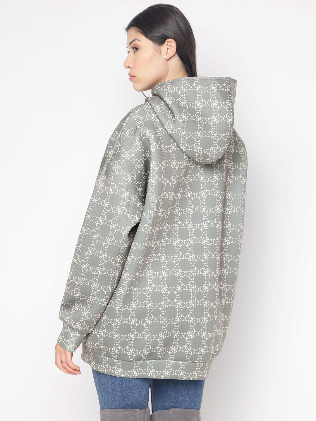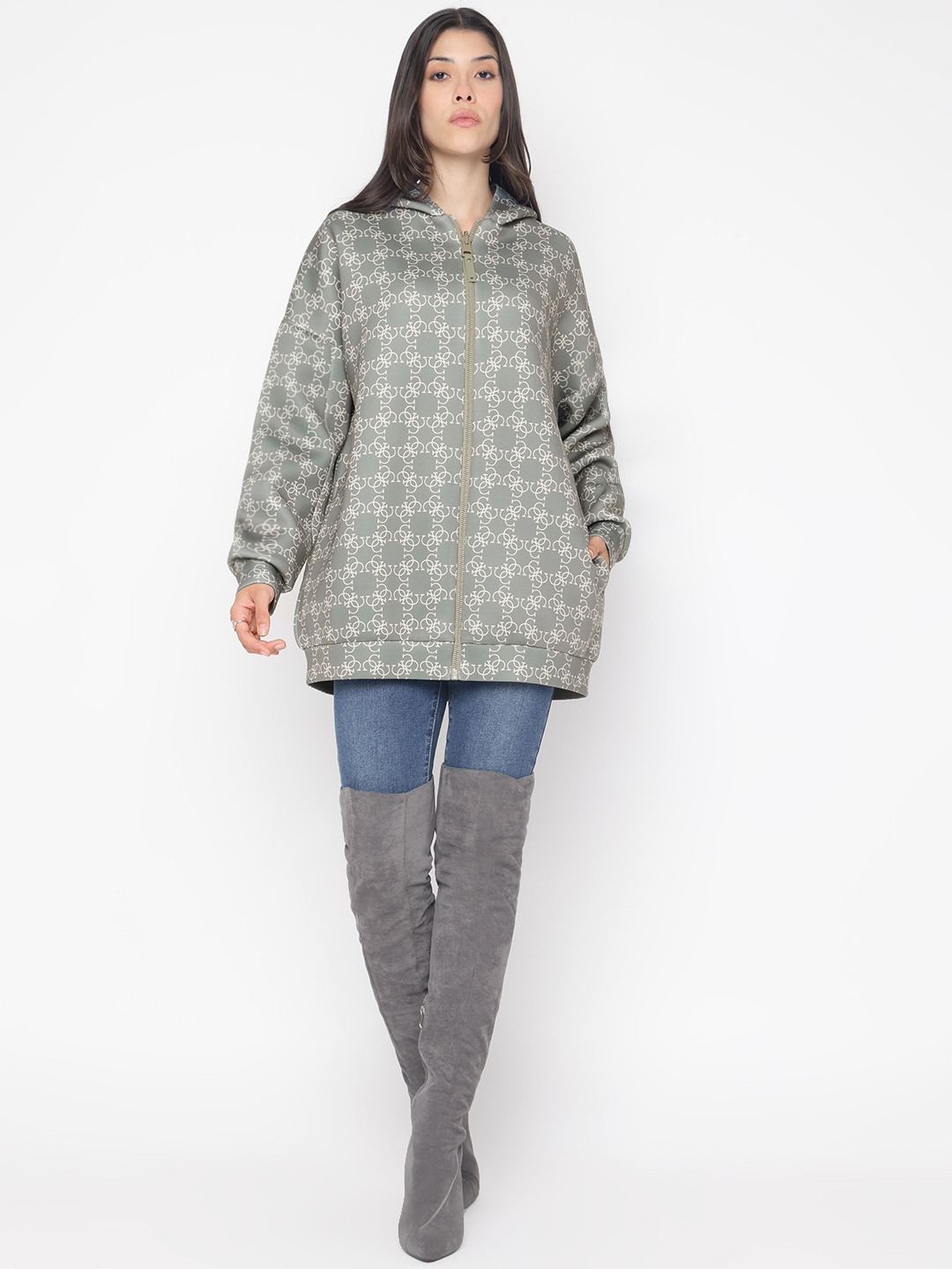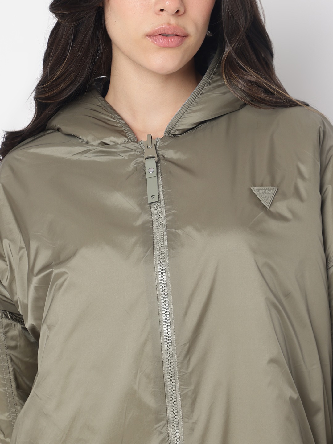 Introducing our versatile reversible jacket in a chic olive hue, designed for the modern woman who values both style and functionality. This regular-fit jacket features a trendy printed pattern, offering two looks in one. Crafted from a premium blend of 78% polyester, 15% viscose, and 7% elastane, it ensures comfort and durability. The full sleeves and practical hood provide warmth, while the zipper closure adds a sleek touch. Perfect for any occasion, this jacket effortlessly elevates your wardrobe.