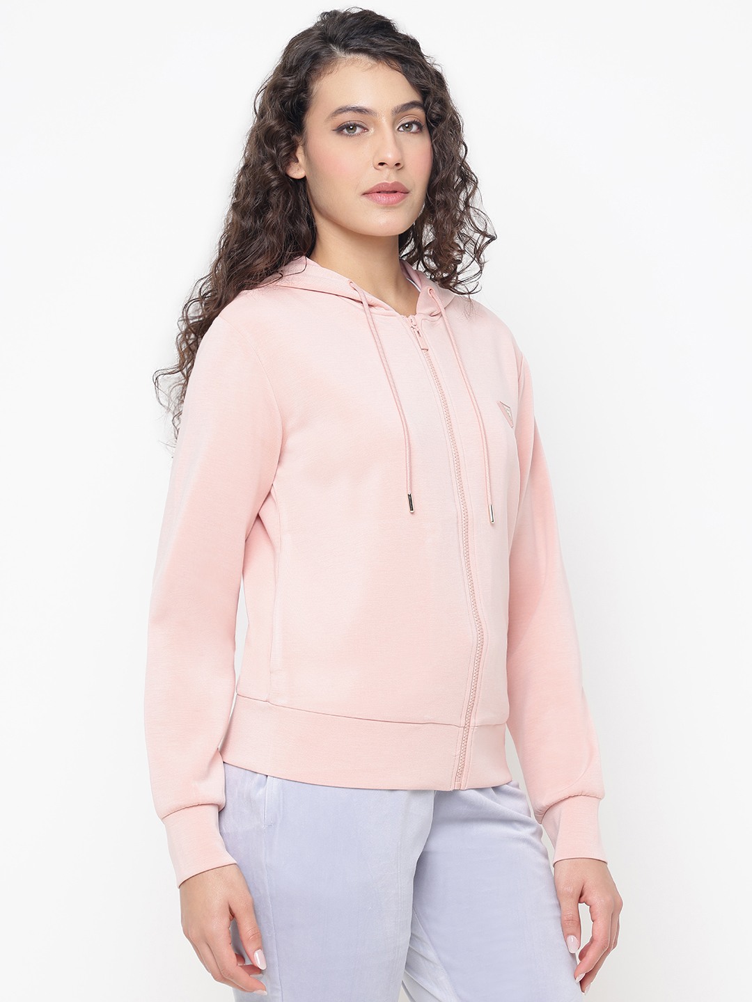 Elevate your casual wardrobe with our women's regular fit solid pattern sweatshirt. Crafted from premium polyester fabric, this sweatshirt offers a perfect blend of comfort and style. The full sleeves provide warmth, while the hooded neck adds a trendy touch, making it ideal for any season. Featuring a convenient zipper closure, it ensures easy wear and a secure fit. Whether you're heading out for a jog or lounging at home, this versatile sweatshirt is your go-to choice for effortless chic. Available in various colors to suit your style.