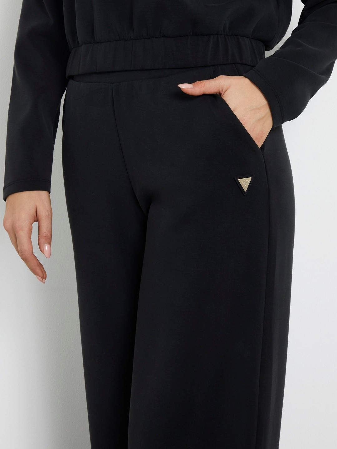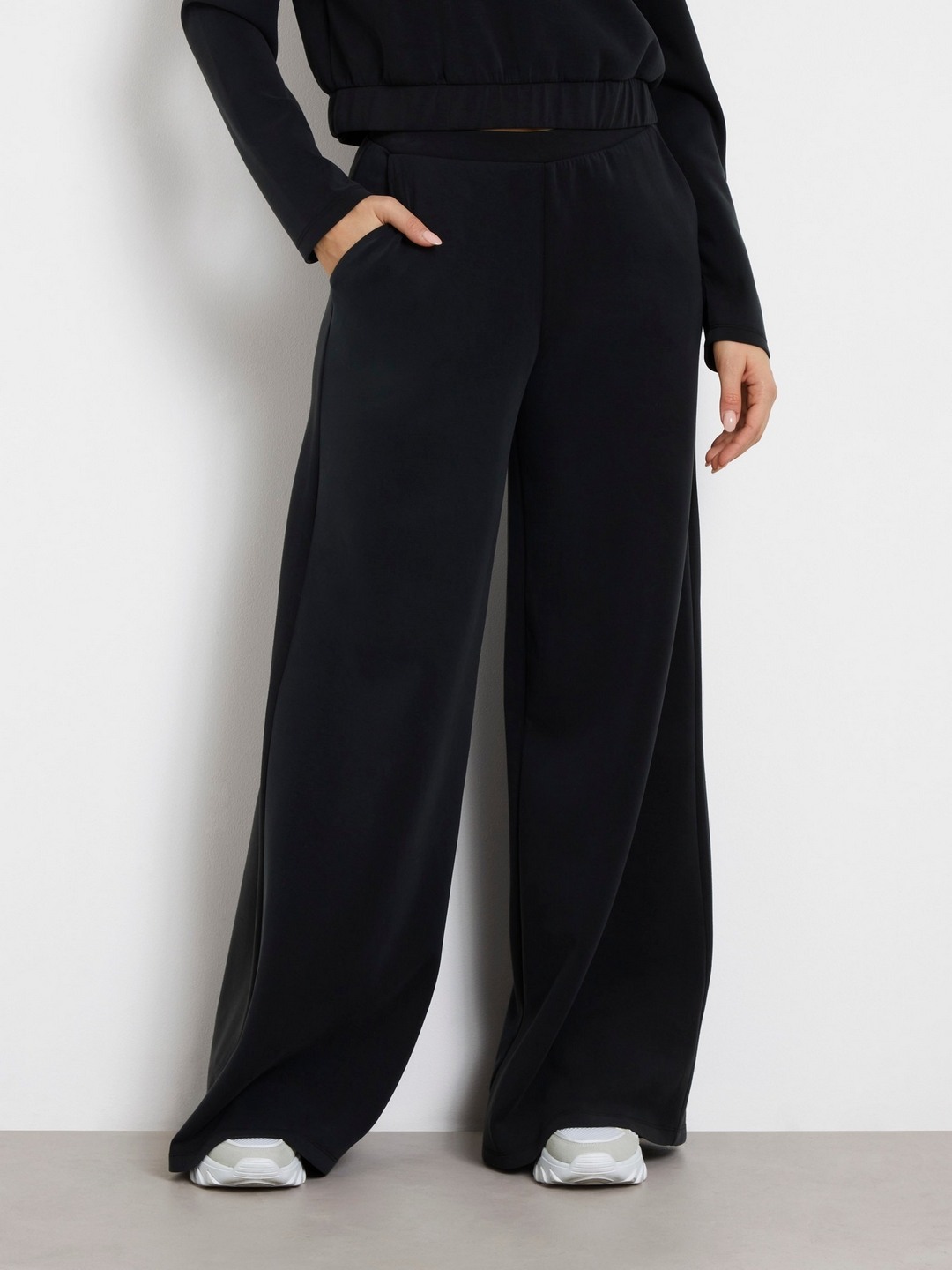 Discover the perfect blend of style and comfort with our black wide-leg pants for women. Crafted from a premium polyester blend fabric, these pants offer a smooth and durable wear that feels great all day long. The high-rise design accentuates your waist, providing a flattering silhouette, while the elastic closure ensures a snug yet flexible fit. The solid pattern adds a touch of elegance, making these pants versatile for both casual outings and formal occasions. Pair them with your favorite top or blouse to create an effortlessly chic look that transitions seamlessly from day to night.