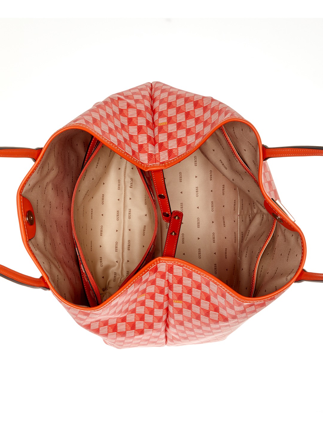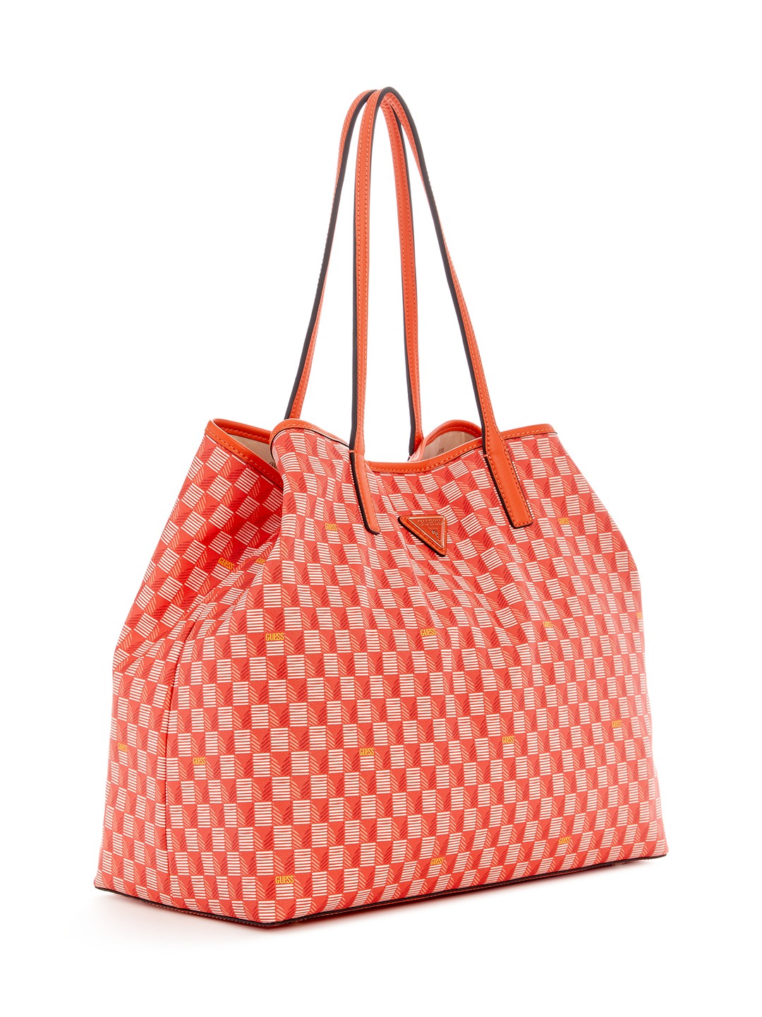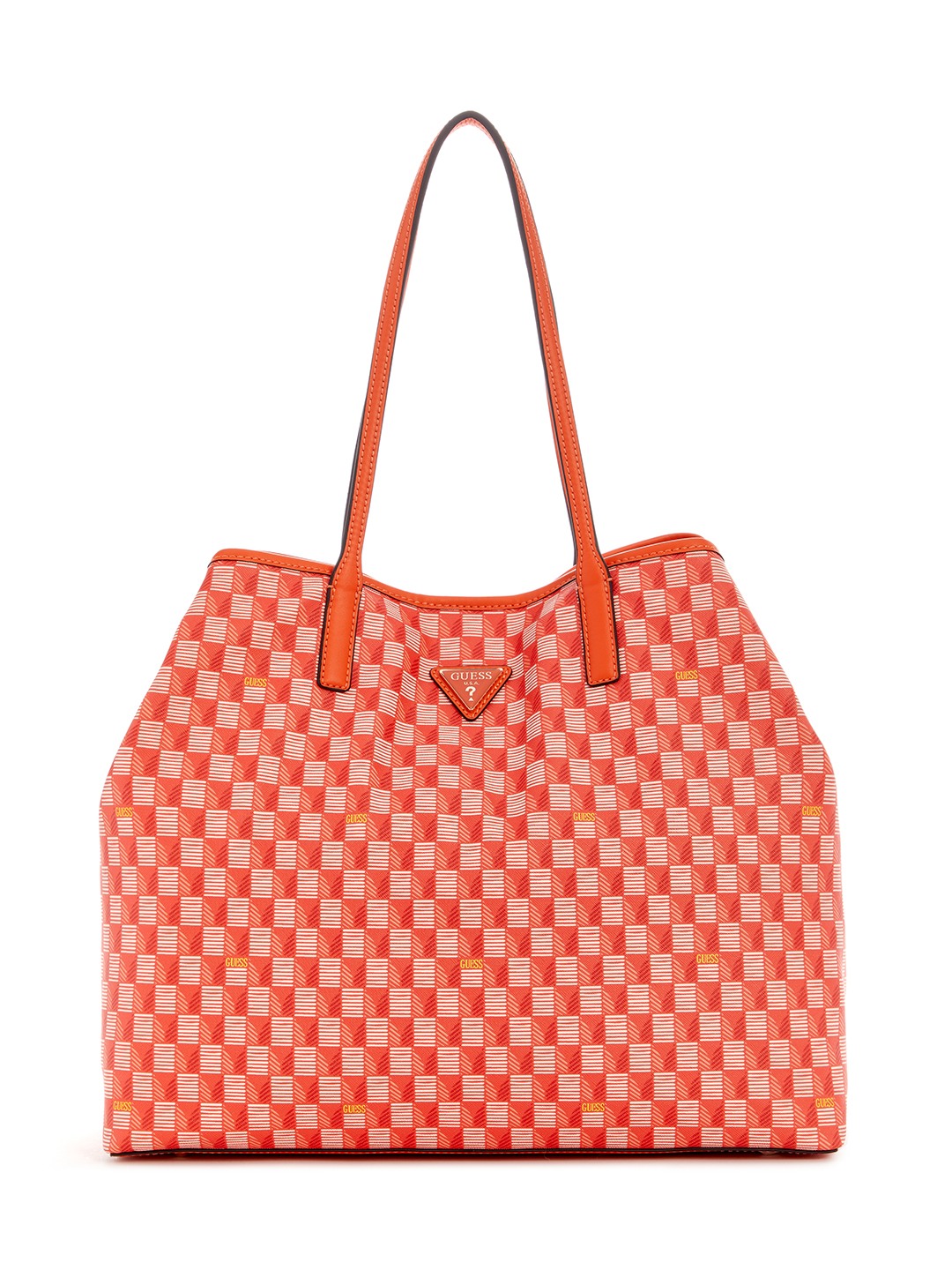 Orange Logo Printed Wave Large Shoulder Bag With Pouch