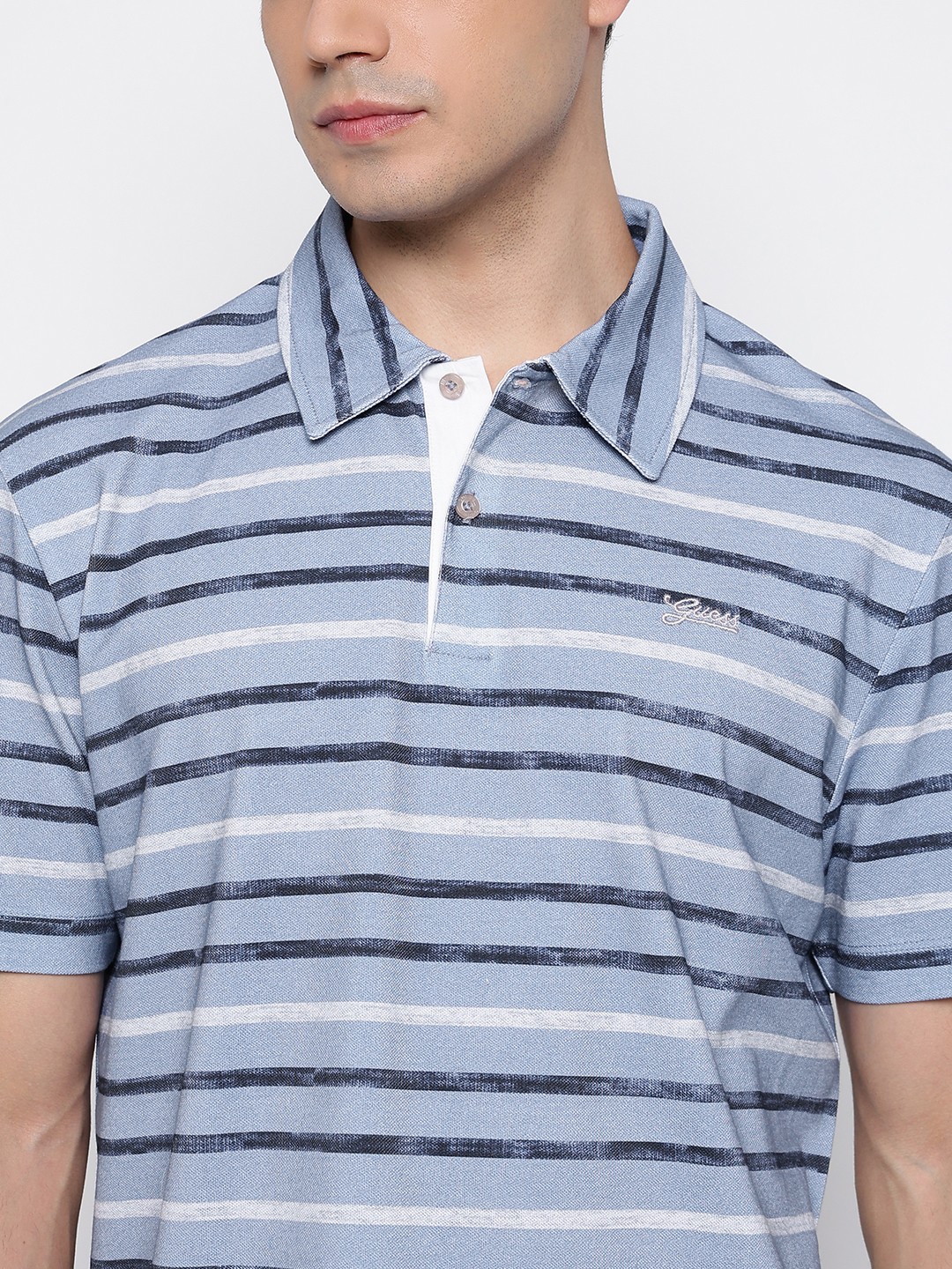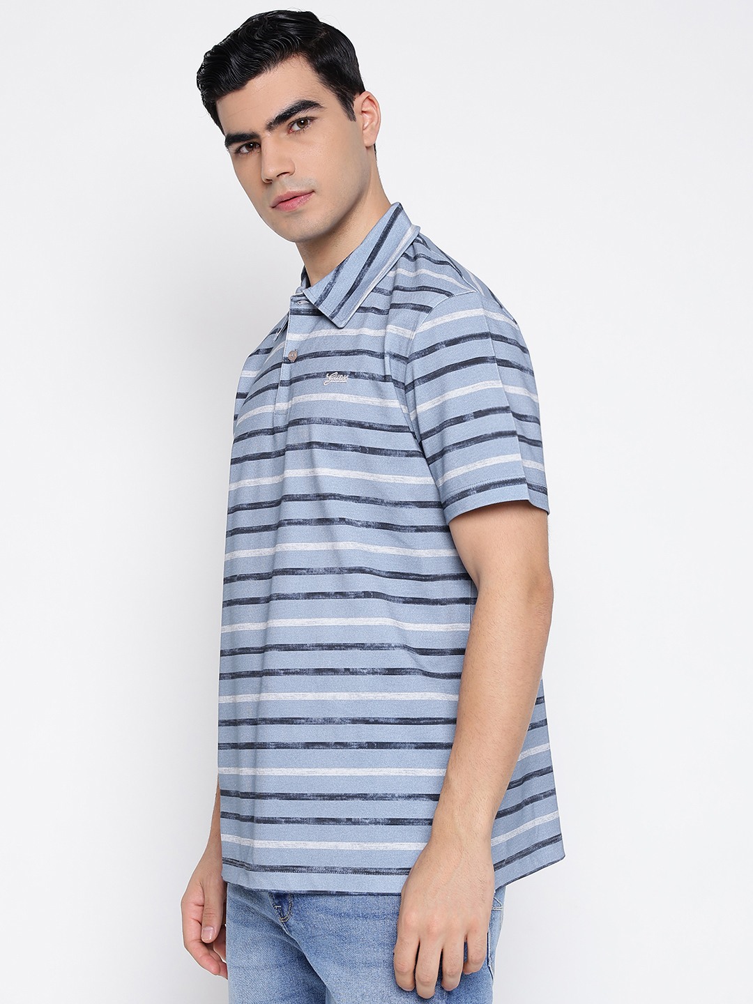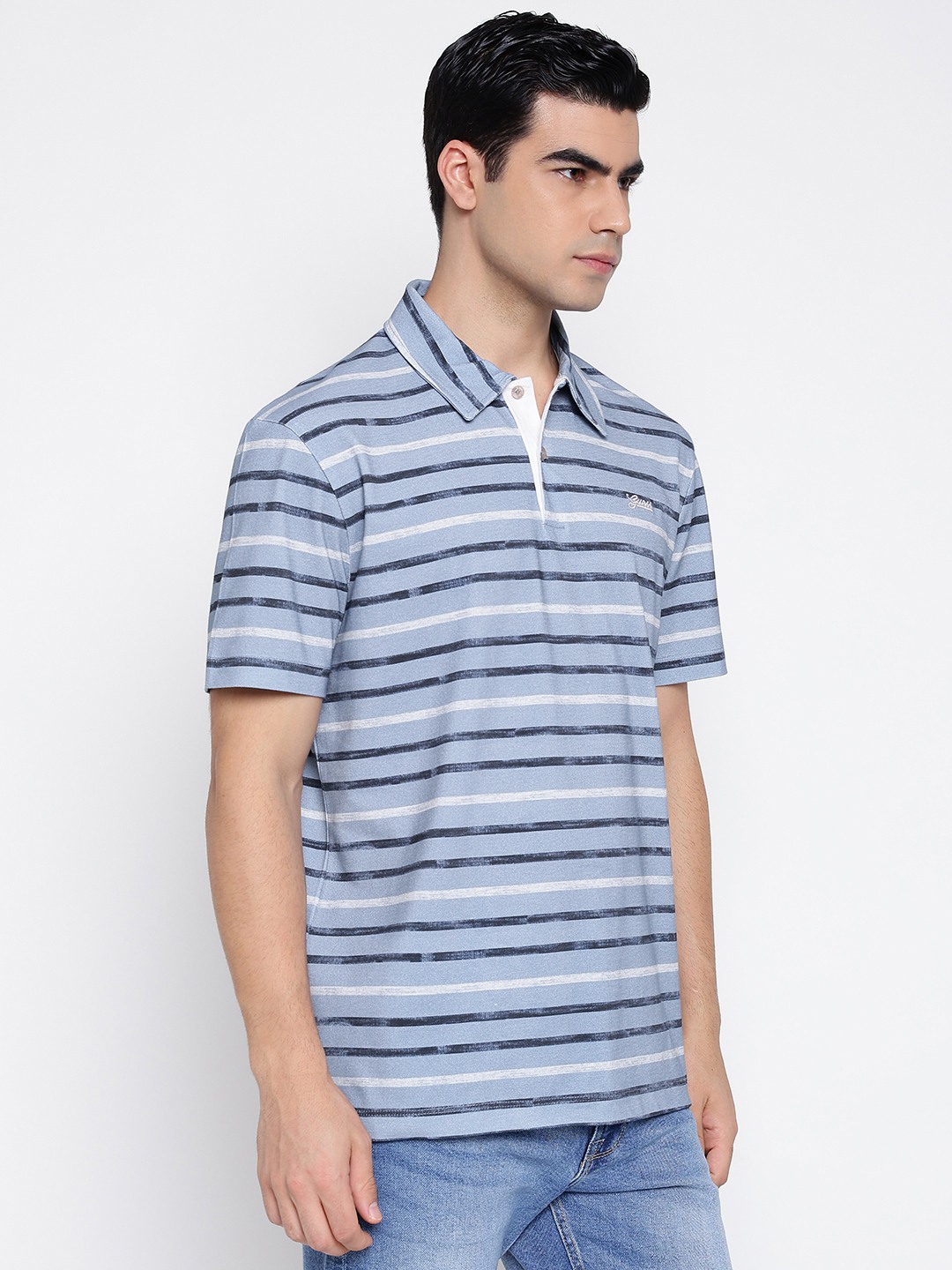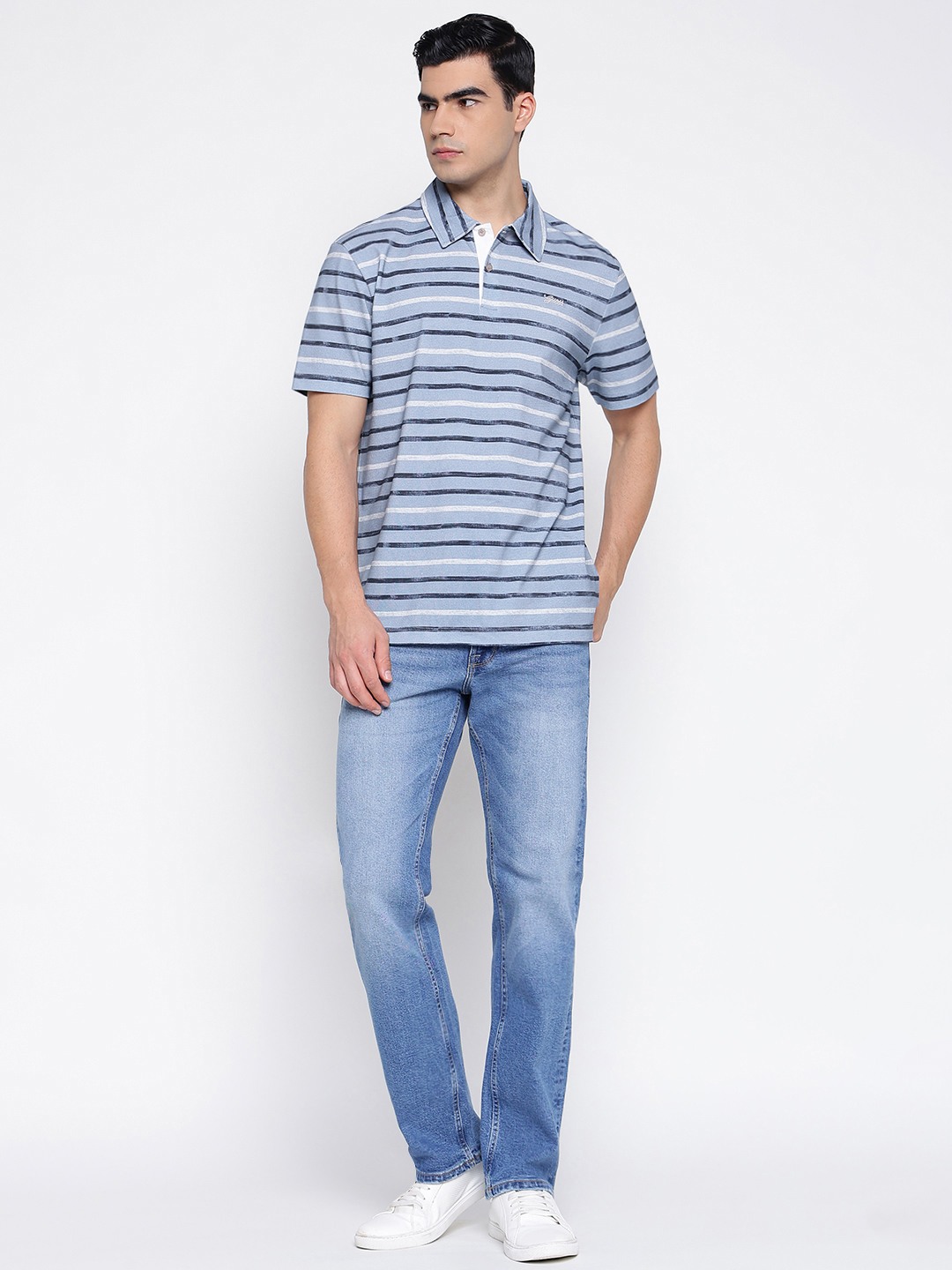 Elevate your casual wardrobe with our men's regular fit polo t-shirt, designed for effortless style and comfort. Crafted from pure cotton, this t-shirt ensures breathability and a soft touch against the skin. Featuring a classic horizontal stripes pattern, it adds a modern twist to a timeless design. The short sleeves and polo collar offer a relaxed yet polished look, perfect for any occasion. A button closure enhances its sophisticated appeal, making it a versatile addition to your collection. Ideal for pairing with jeans or chinos, this t-shirt is a must-have for the fashion-forward man.
