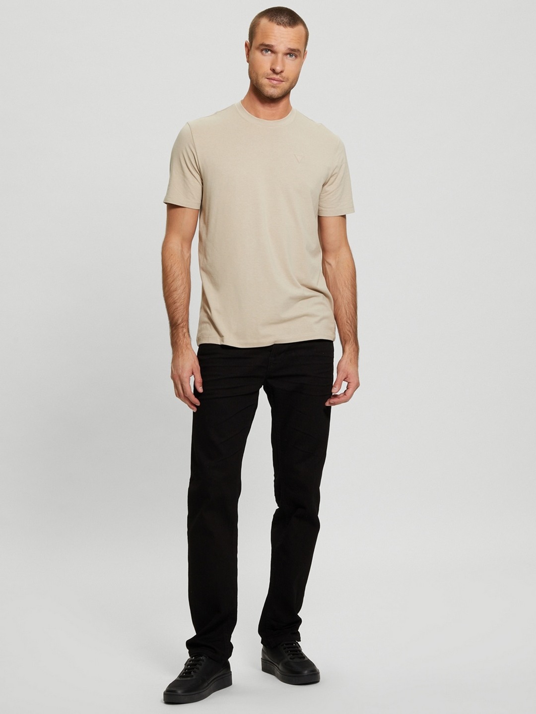 Elevate your casual wardrobe with our beige T-shirt, featuring a regular fit and solid pattern. Crafted from a soft cotton blend, it offers comfort and style. The short sleeves and round neck design make it versatile for any occasion. Easy pull-on closure ensures a hassle-free experience. Perfect for everyday wear.