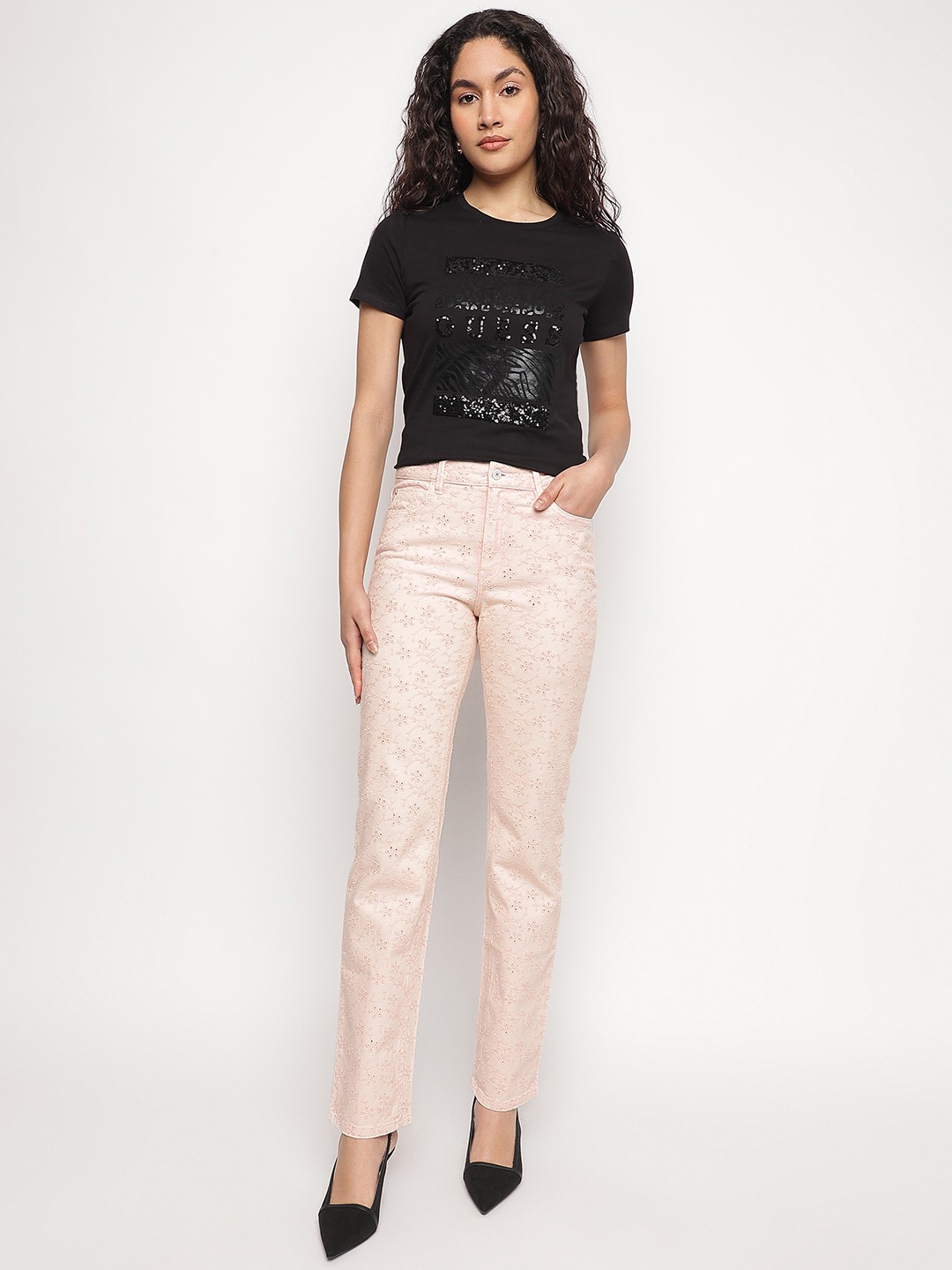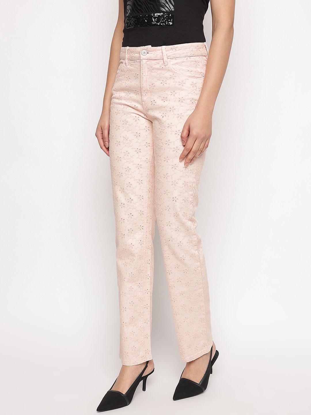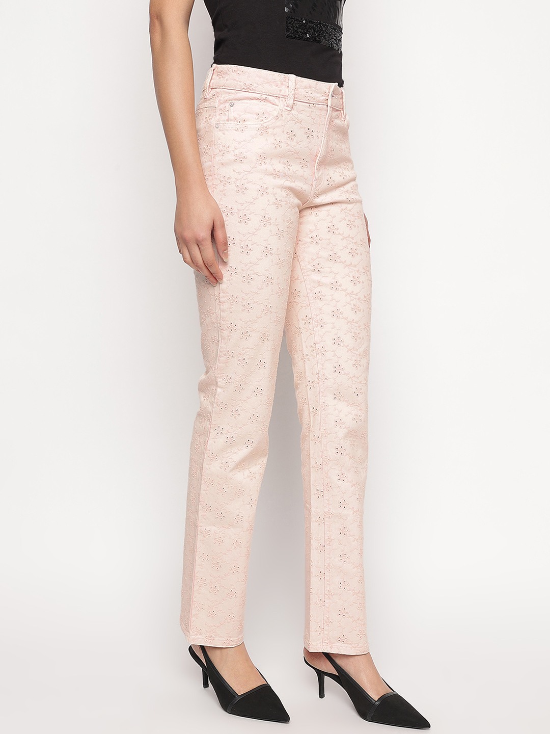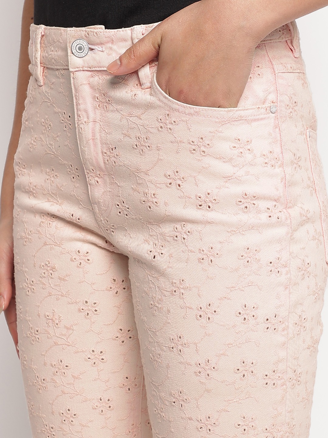 Peach Embroidered Skinny Fit Floridada Jeans