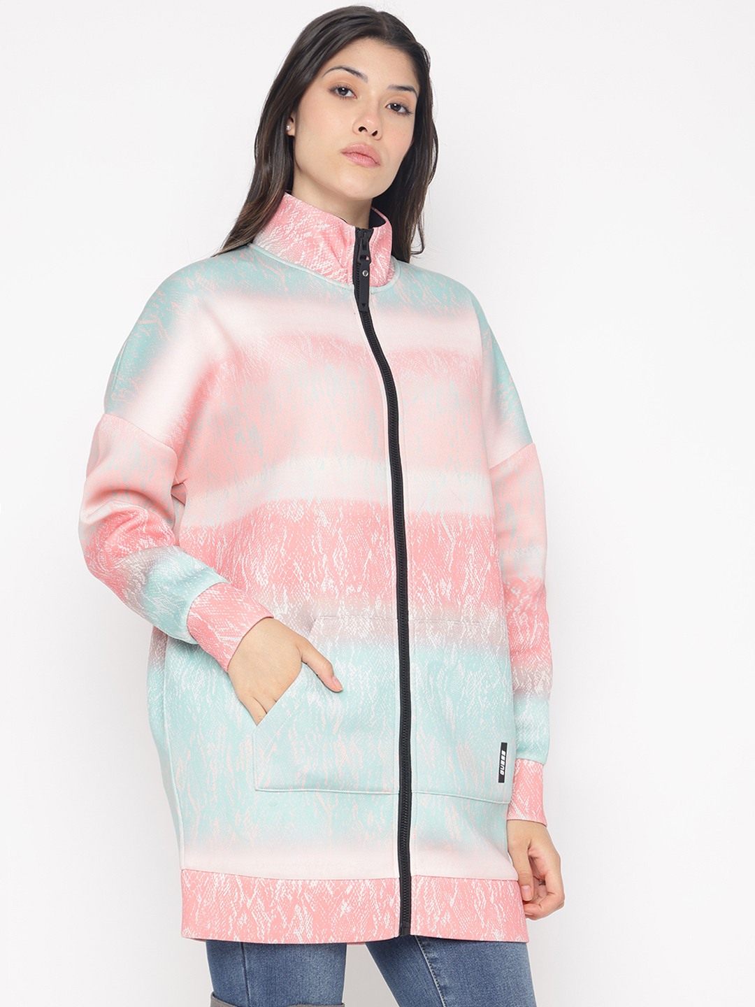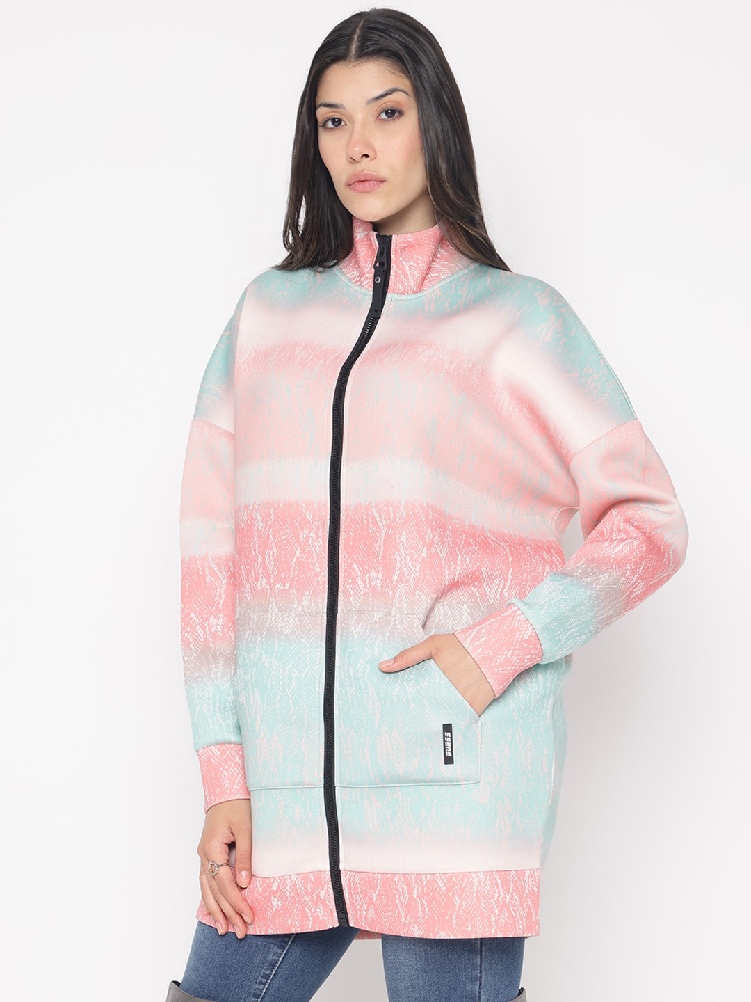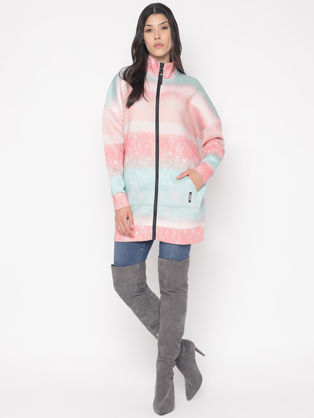 Elevate your casual wardrobe with our chic peach ombre sweatshirt, designed for the modern woman. This regular-fit piece features a stylish mock neck and full sleeves, offering both comfort and elegance. Crafted from a premium blend of 78% polyester, 15% viscose, and 7% elastane, it ensures a soft touch and flexible fit. The convenient zipper closure adds a touch of practicality, making it perfect for layering. Whether you're lounging at home or out for a casual day, this sweatshirt is your go-to choice for effortless style.