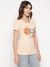 Peach Printed Round Neck T-Shirt