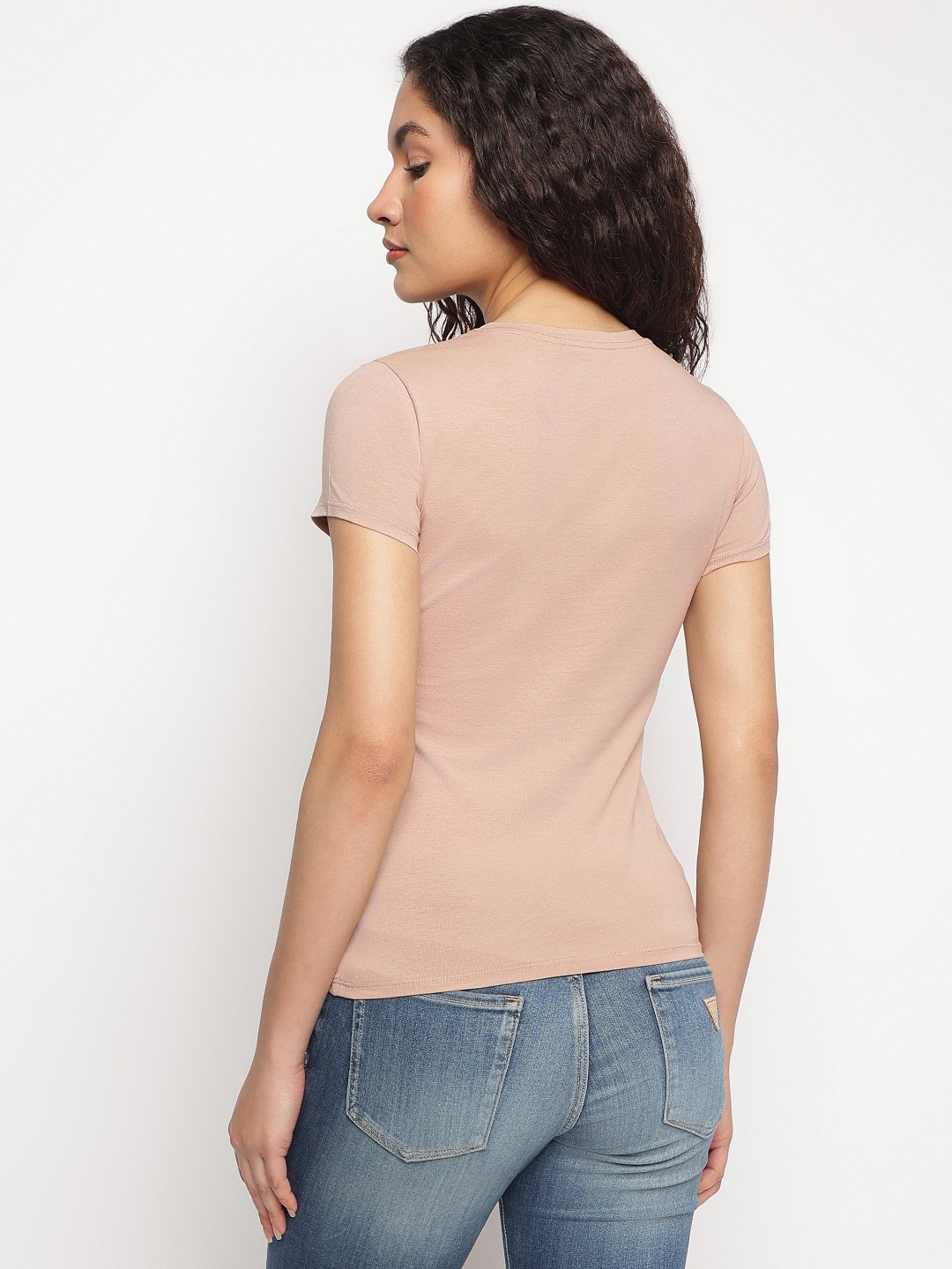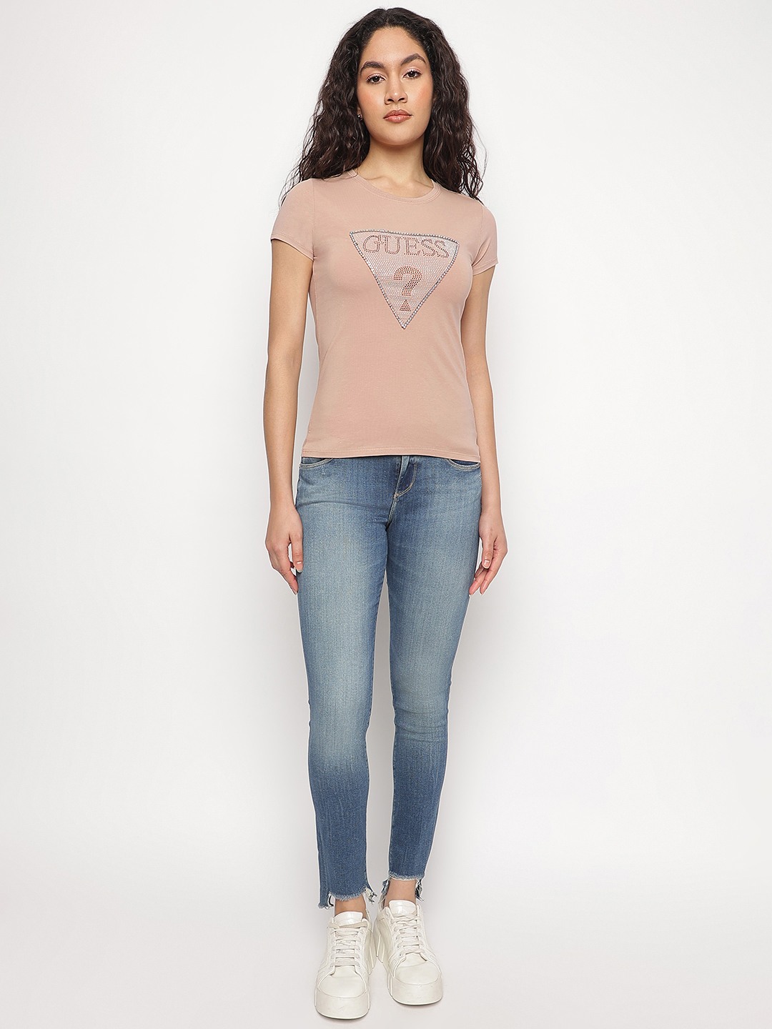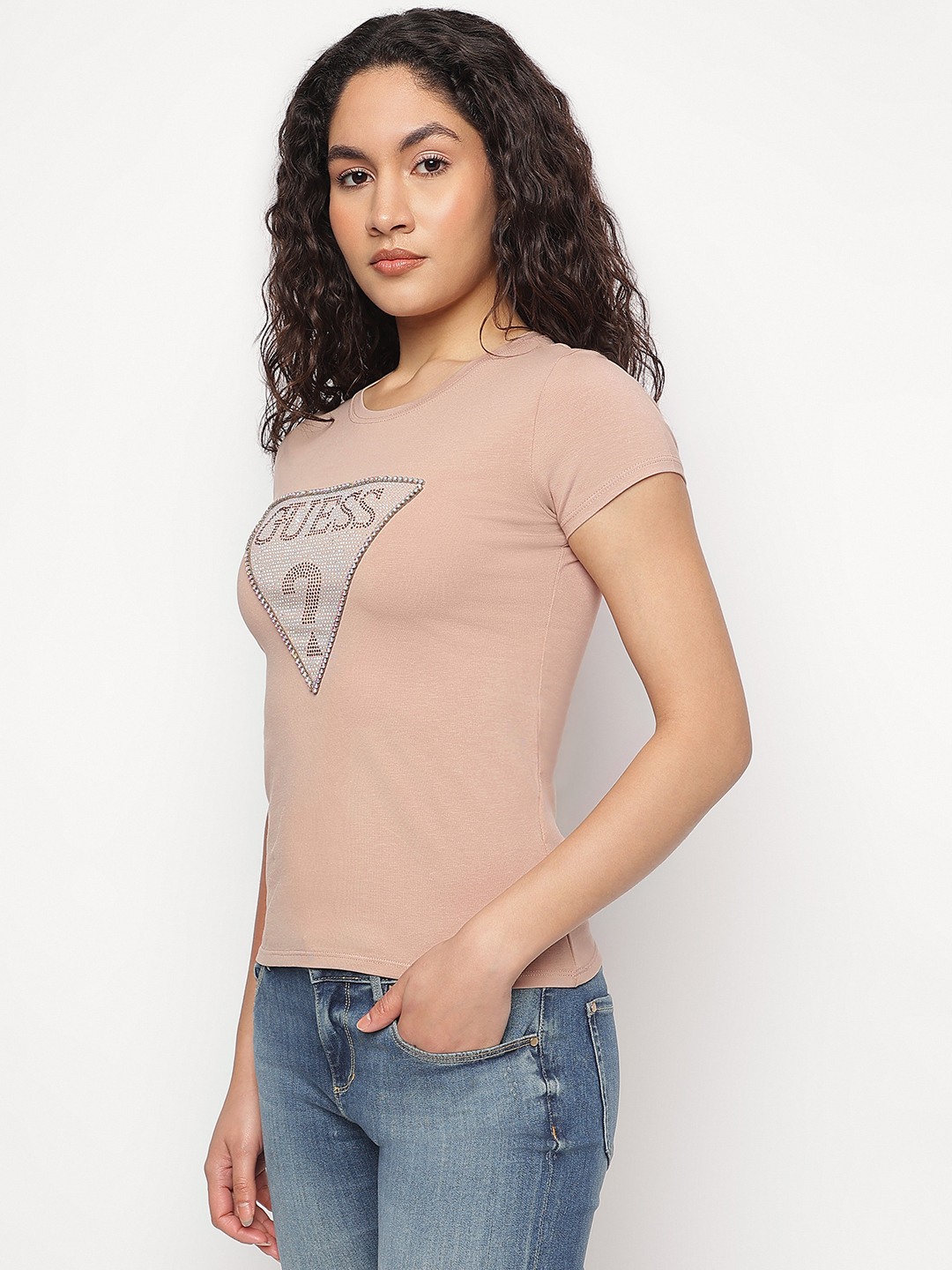 Pink Embellished Round Neck Triangle Crystal T-Shirt