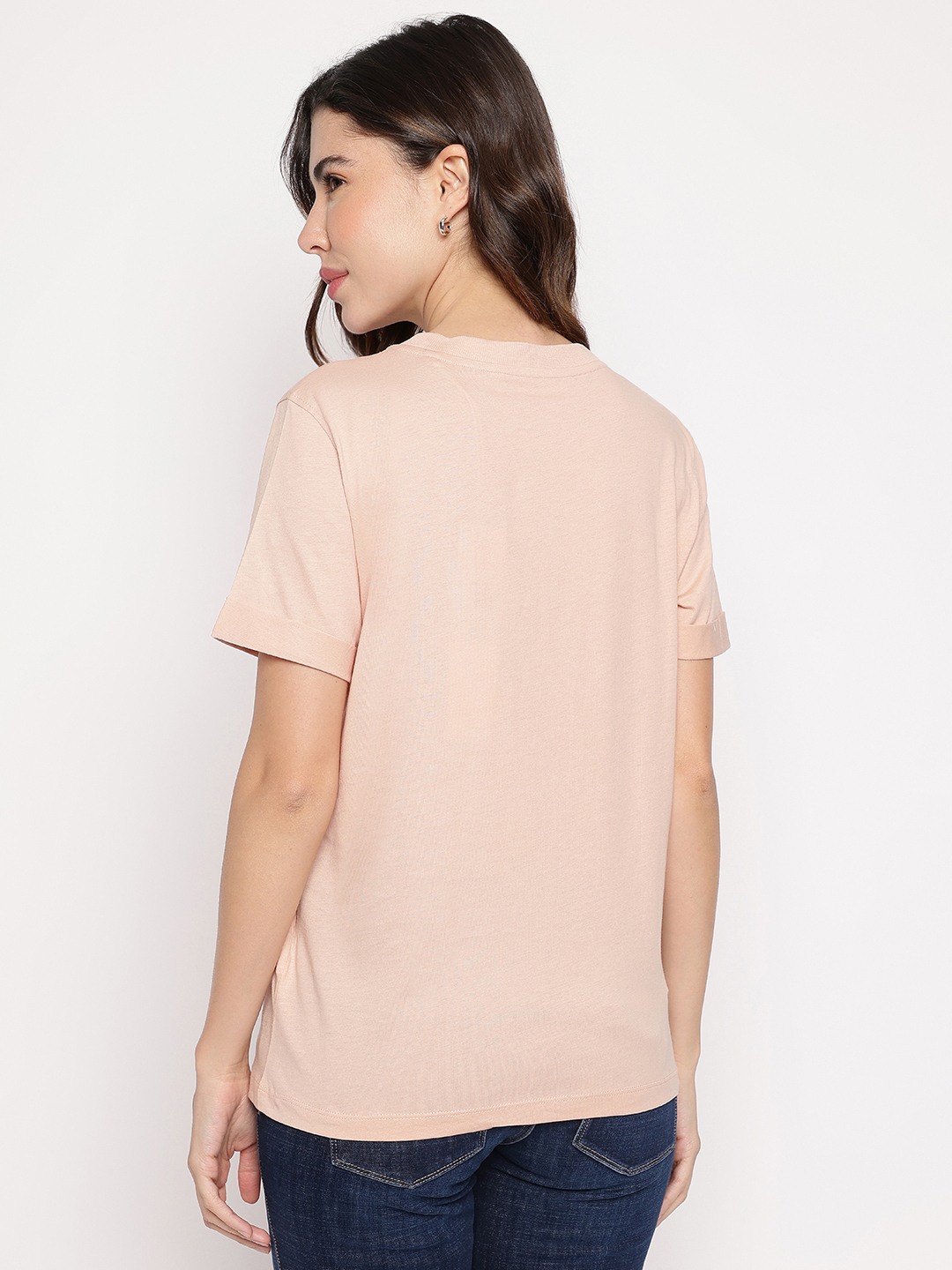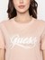Pink Printed Round Neck Glittery Logo T-Shirt