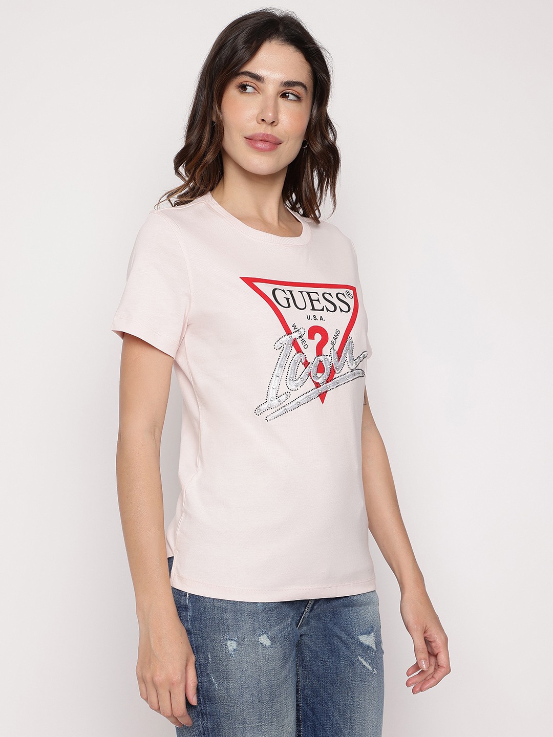 Pink Printed Round Neck Icon T-Shirt