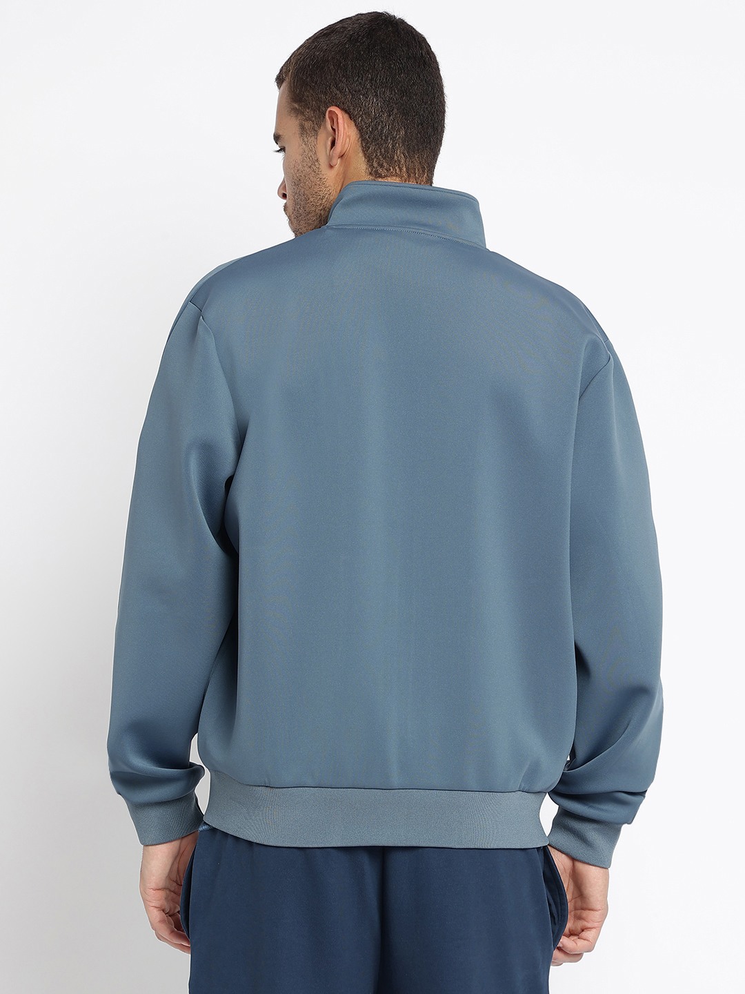 Elevate your casual wardrobe with our Men's Blue Sweatshirt, designed for both style and comfort. This regular-fit sweatshirt features a sleek solid pattern that effortlessly complements any outfit. Crafted from a premium polyester blend fabric, it ensures durability and a soft touch against the skin. The full sleeves provide warmth, while the high neck adds a touch of sophistication. Equipped with a convenient zipper closure, this sweatshirt offers easy wearability and a modern look. Perfect for any occasion, it combines functionality with fashion, making it an essential addition to your collection.