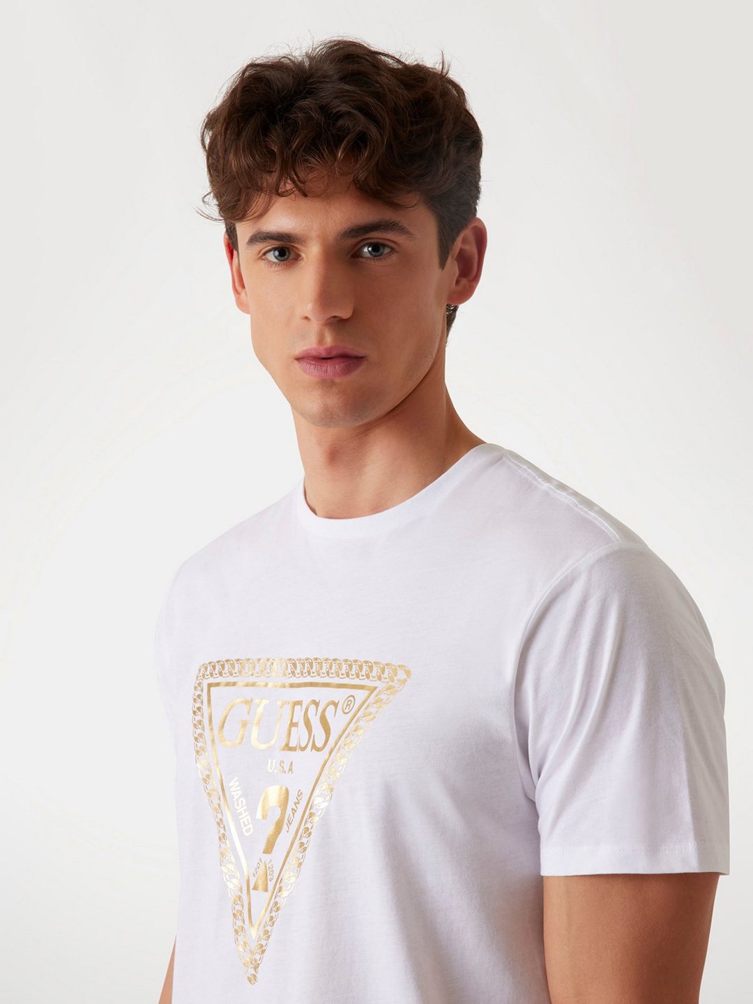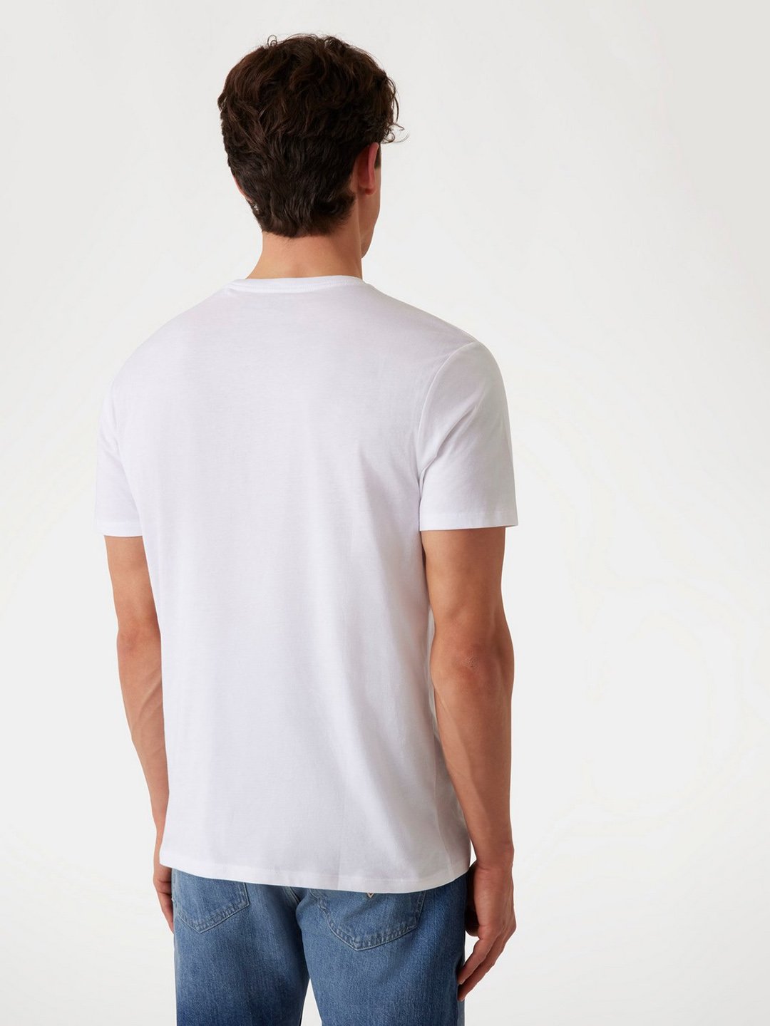 Elevate your casual wardrobe with our classic white t-shirt, designed for the modern man who values comfort and style. This regular-fit tee features a striking printed pattern that adds a touch of personality to any outfit. Crafted from pure cotton fabric, it ensures breathability and softness, making it perfect for all-day wear. The short sleeves and round neck offer a timeless silhouette, while the pull-on closure provides ease and convenience. Ideal for any occasion, this versatile t-shirt is a must-have staple.