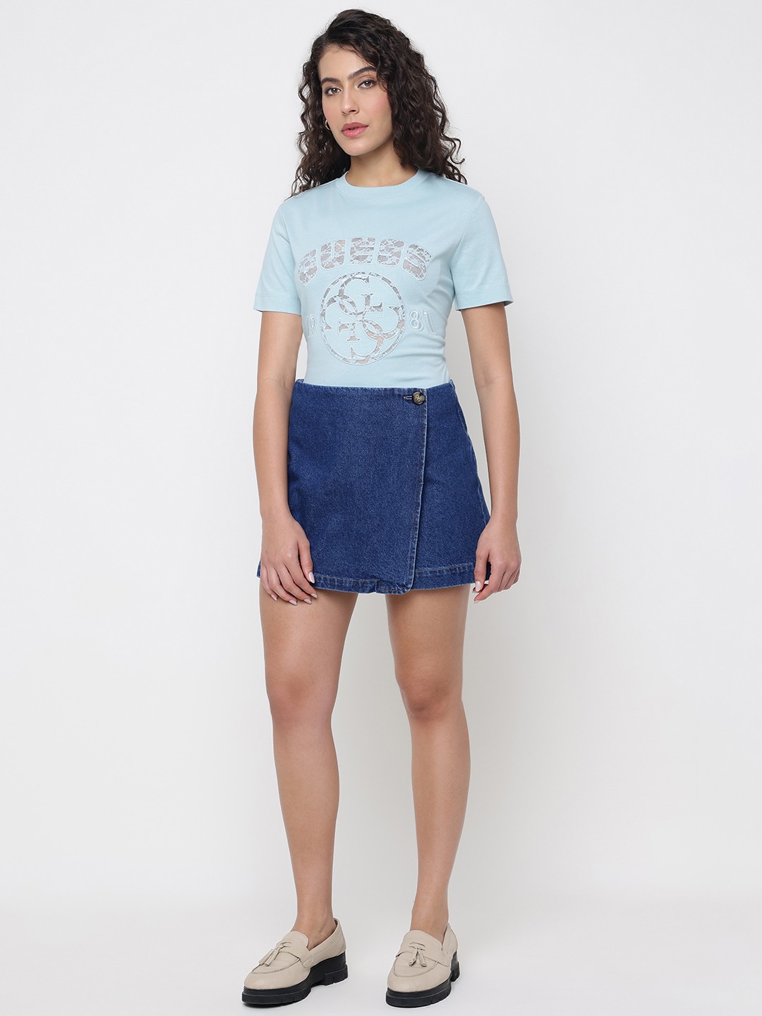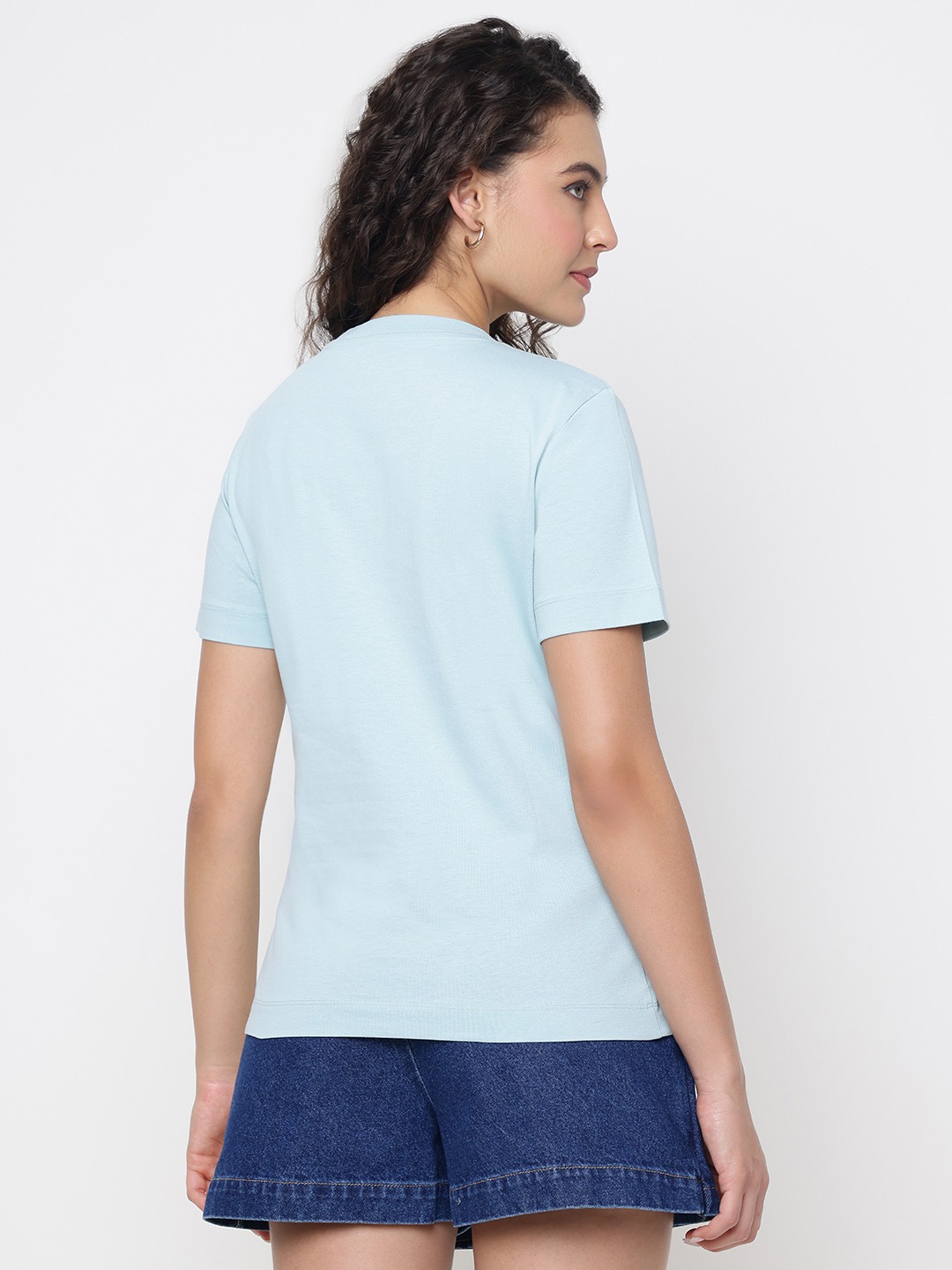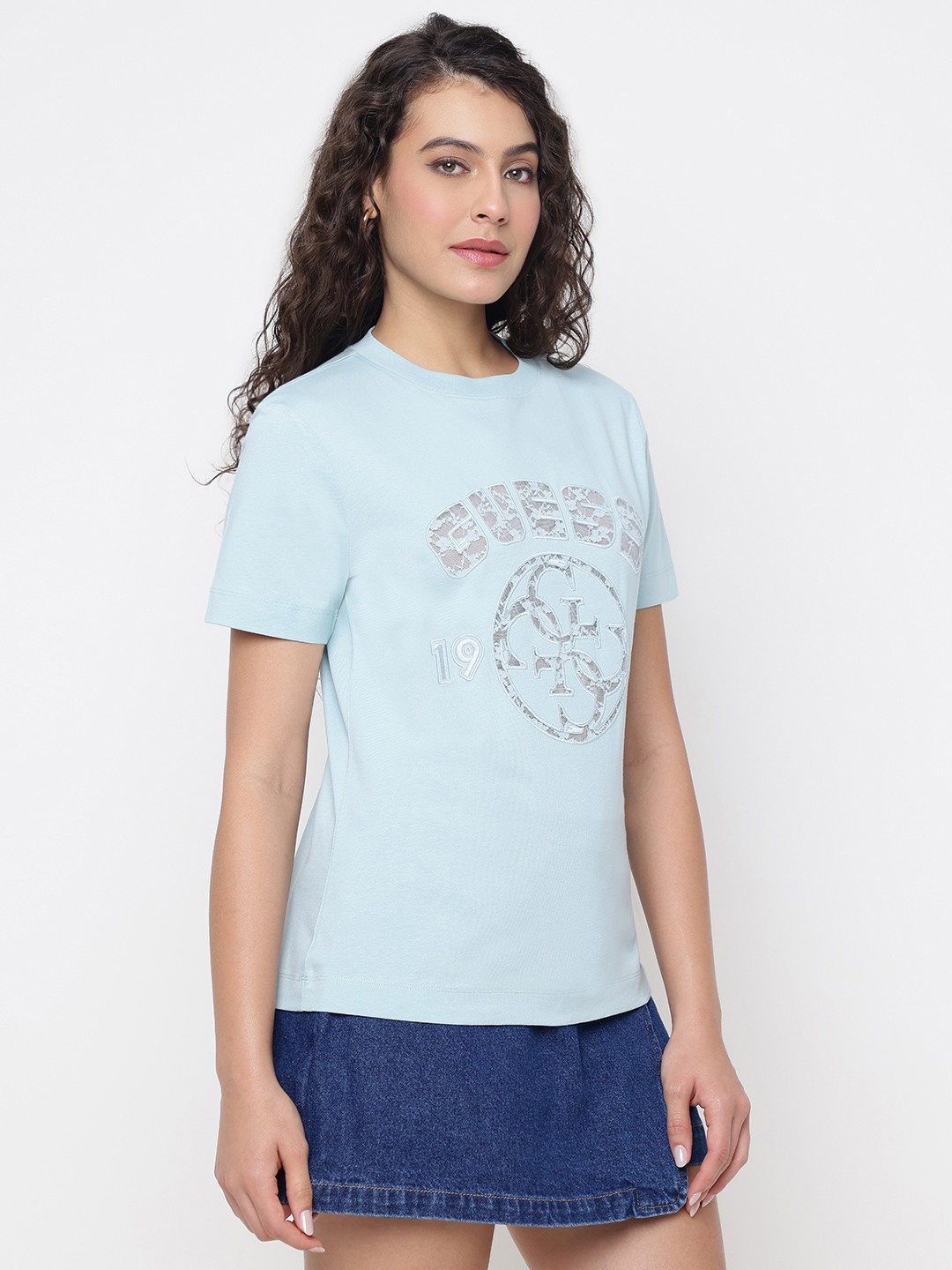 Elevate your casual wardrobe with our women's regular fit t-shirt, designed for both comfort and style. Crafted from pure cotton fabric, this tee offers a soft, breathable feel perfect for everyday wear. The textured logo pattern adds a touch of modern flair, making it a versatile piece for any occasion. Featuring a classic round neck and short sleeves, it ensures a relaxed fit that flatters all body types. The convenient pull-on closure makes dressing effortless. Ideal for pairing with jeans or skirts, this t-shirt is a must-have staple.