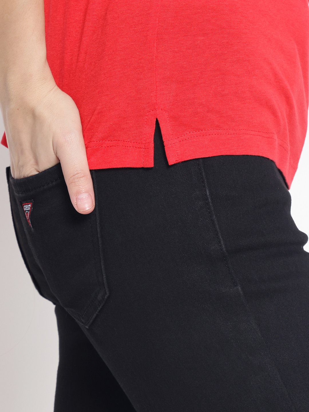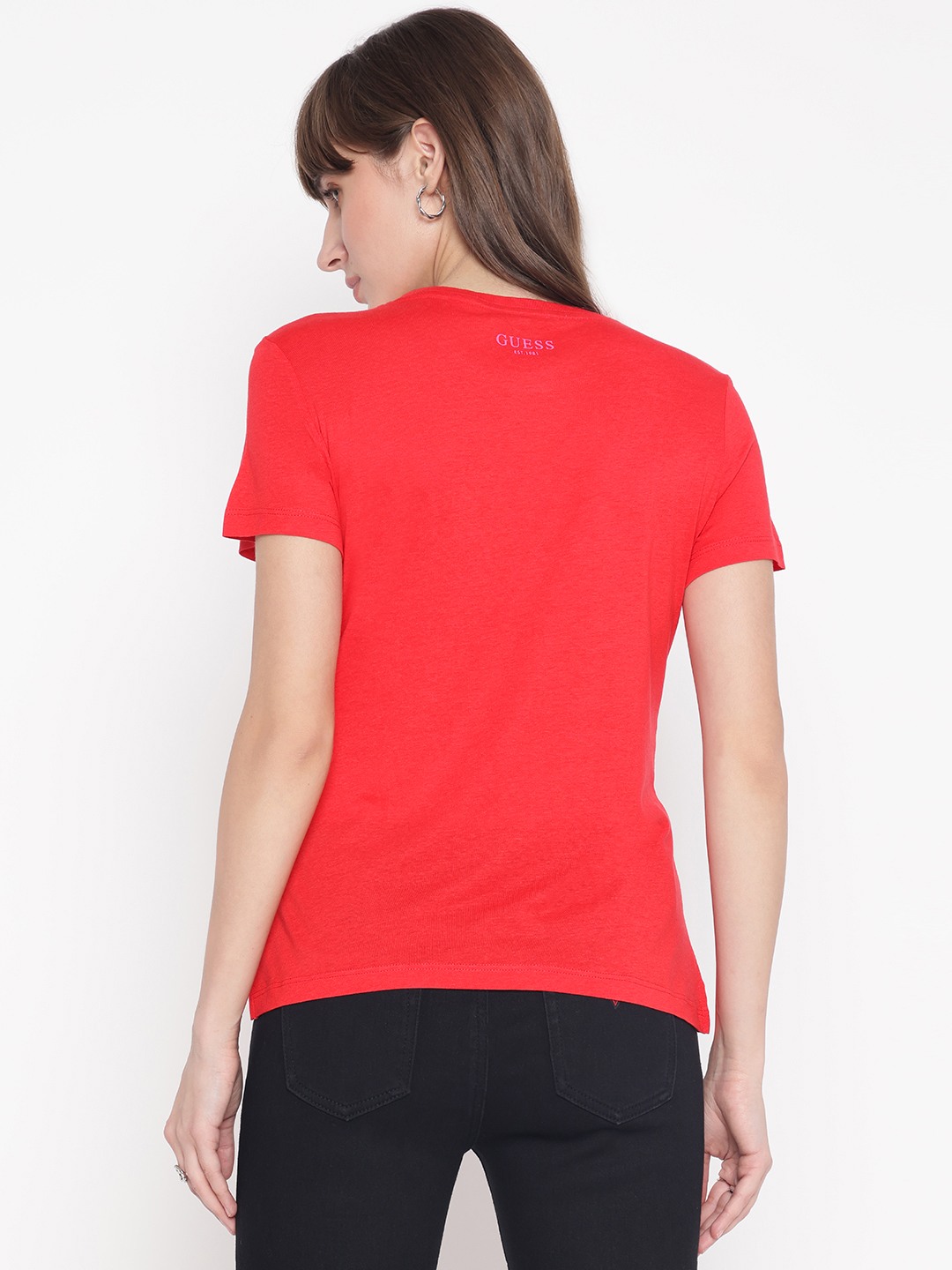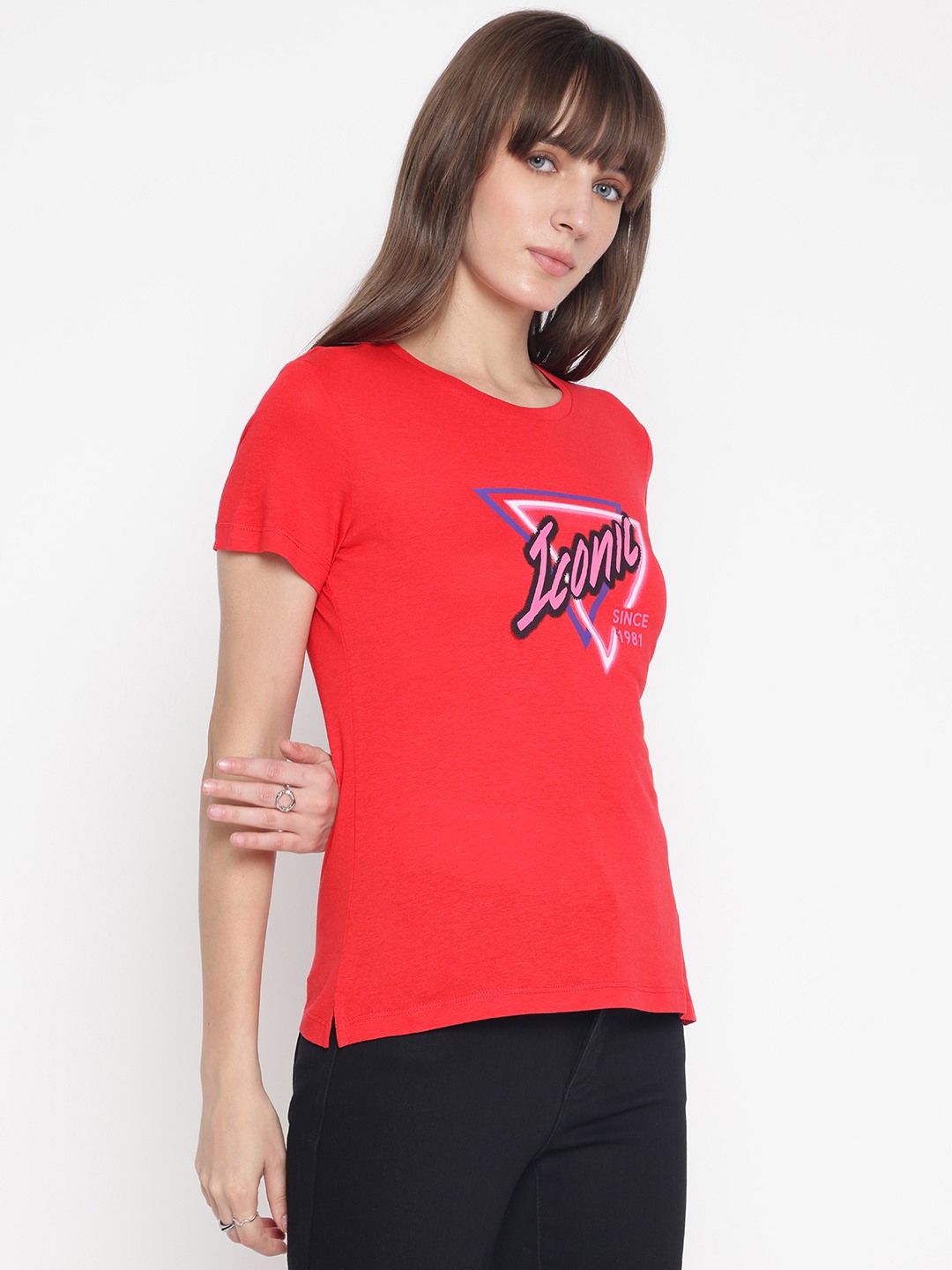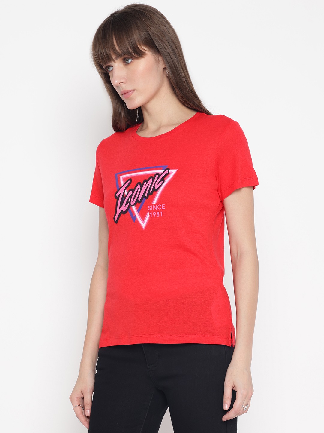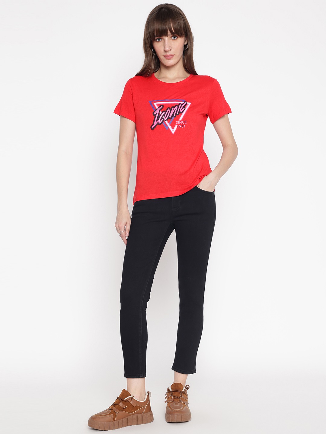 Elevate your casual wardrobe with our vibrant red T-shirt, designed for the modern woman who values both style and comfort. This regular-fit tee features a chic printed pattern that adds a playful touch to any outfit. Crafted from a soft blend of 60% cotton and 40% modal, it offers a breathable and lightweight feel, perfect for all-day wear. The classic crew neck and short sleeves provide a timeless silhouette, while the convenient pull-on closure ensures easy dressing. Pair it with your favorite jeans or skirts for an effortlessly stylish look.