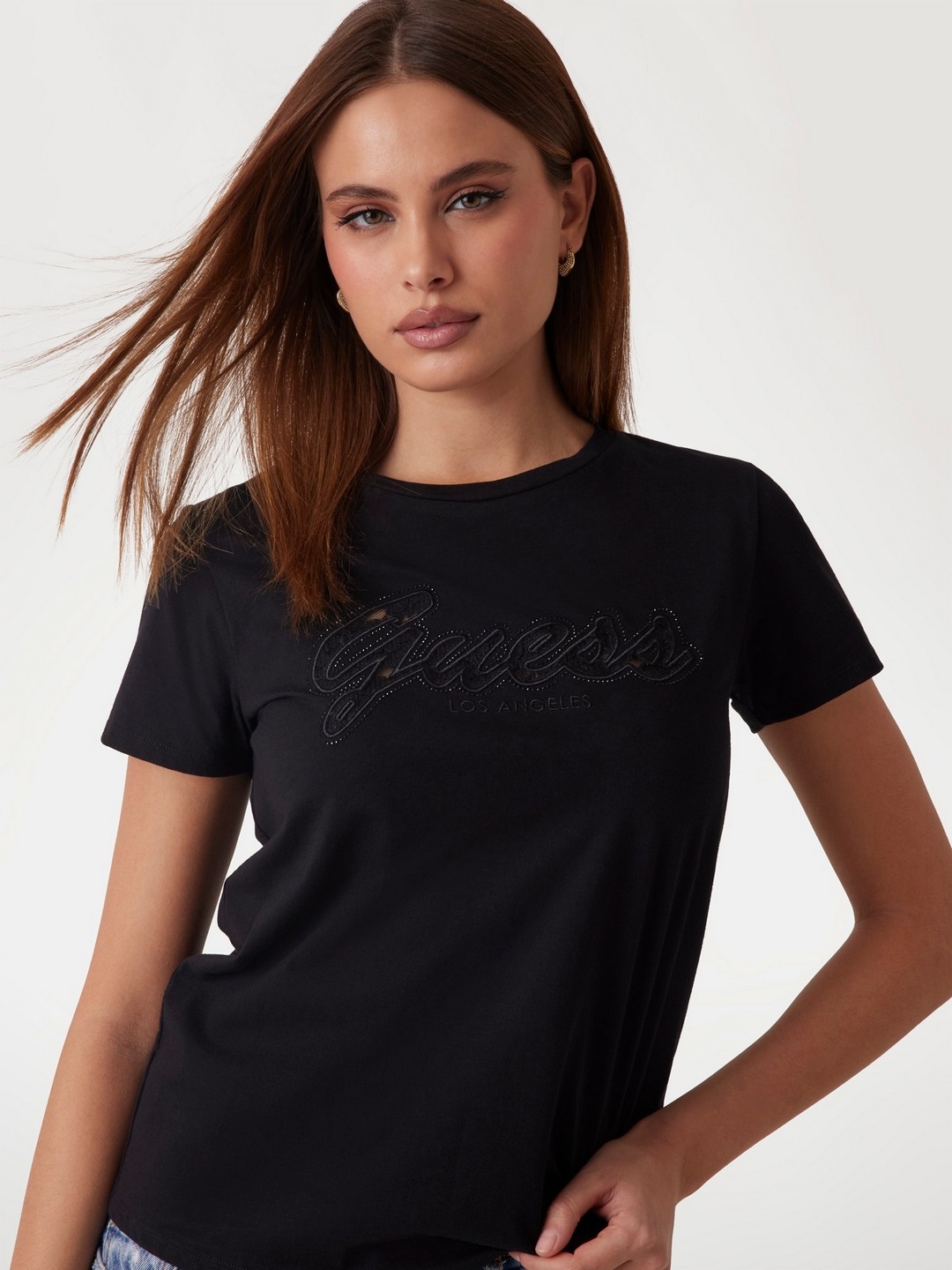 Elevate your wardrobe with our classic black T-shirt, designed for the modern woman who values both style and comfort. This regular-fit tee features an exquisite embroidered pattern that adds a touch of elegance to any outfit. Crafted from pure cotton fabric, it ensures breathability and softness, making it perfect for all-day wear. The short sleeves and round neck offer a timeless silhouette, while the pull-on closure provides ease of wear. Whether you're dressing up for a casual outing or lounging at home, this versatile T-shirt is a must-have staple that complements any look effortlessly.