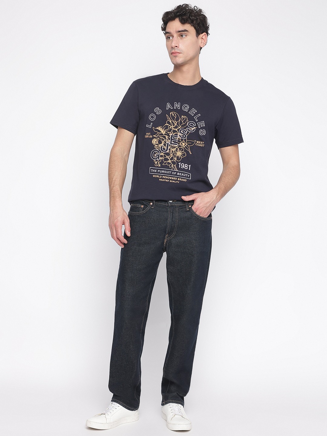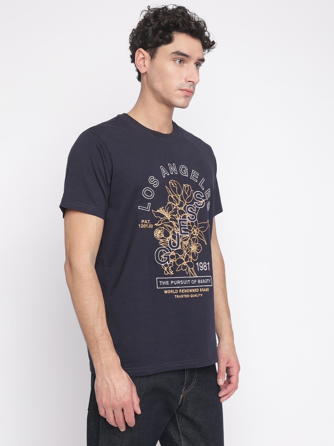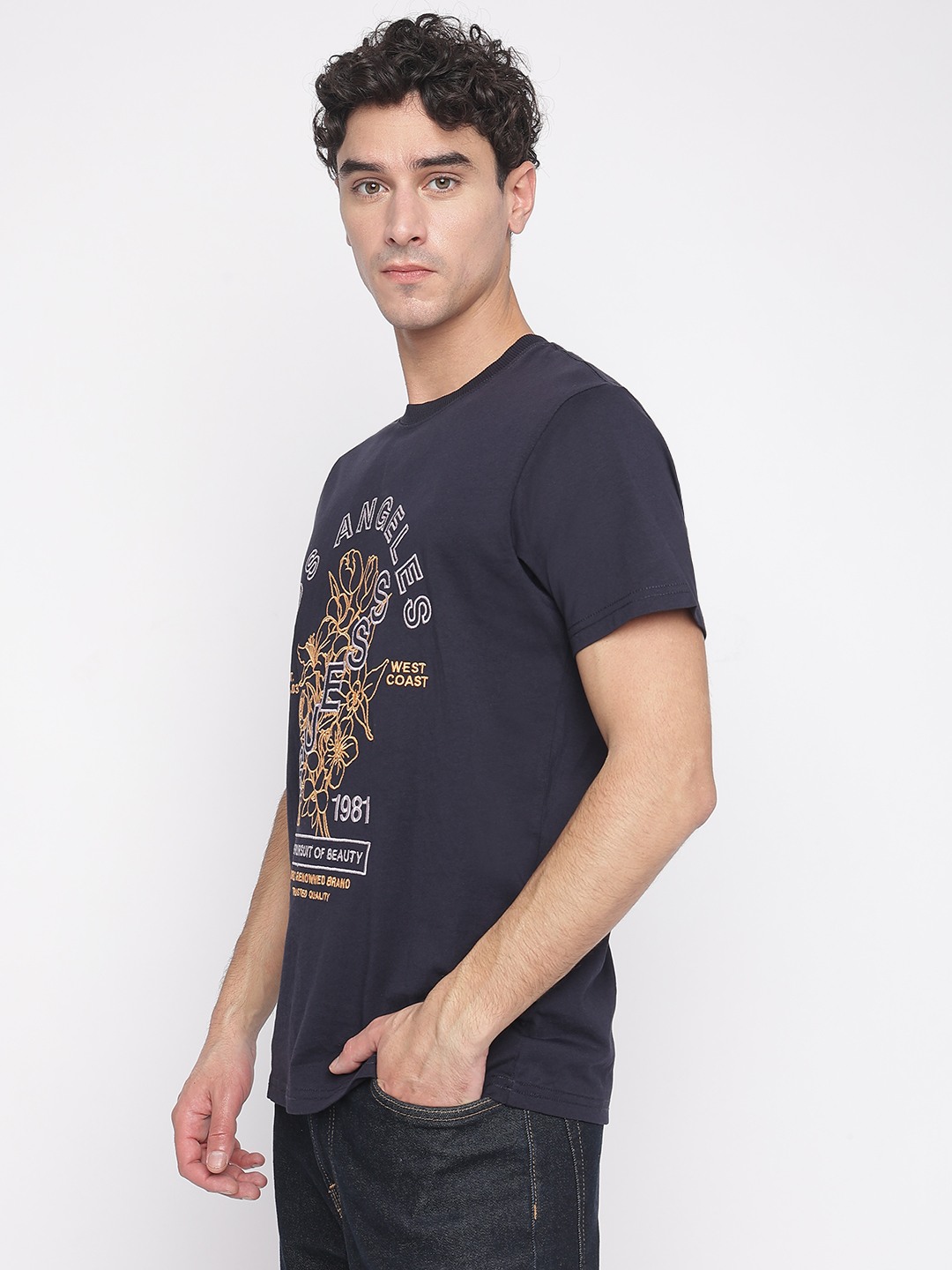 Smart Blue Printed Round Neck Short Sleeves T-Shirt