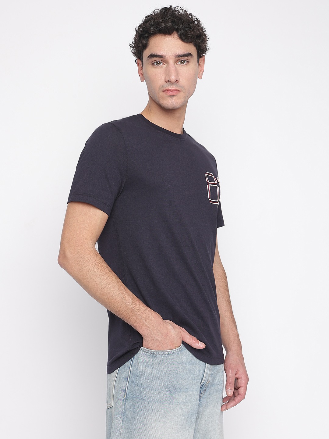 Smart Blue Solid Round Neck Short Sleeves T-Shirt