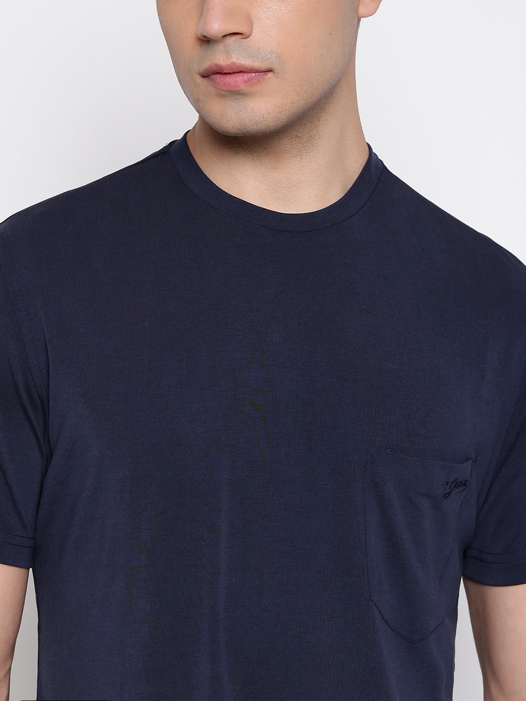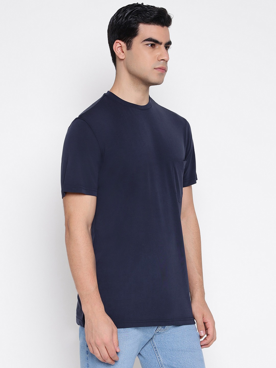 Smooth Small Eco Modal Poly Smart Blue Solid Round Neck Regular Fit T-Shirt