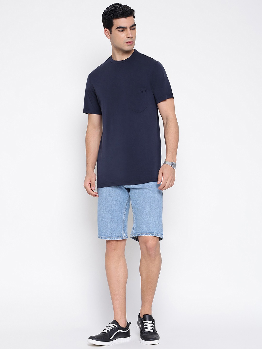 • Experience ultimate comfort and style with our men's regular fit t-shirt. Crafted from premium modal fabric, this tee offers a luxuriously soft feel against the skin, ensuring all-day comfort. The solid pattern provides a versatile look, perfect for any occasion. Featuring a classic round neck and short sleeves, this t-shirt is designed for a timeless appeal. The convenient pull-on closure makes it easy to wear, while the regular fit ensures a flattering silhouette. Elevate your wardrobe with this essential piece.