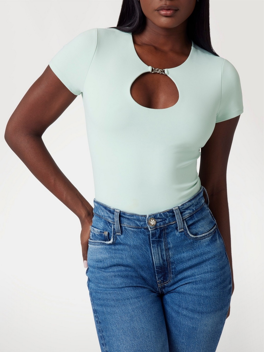 Soft Mint Solid Keyhole Neck Short Sleeves Top