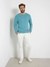 Soft Teal Solid Round Neck Full Sleeve Deven Pullover Sweater