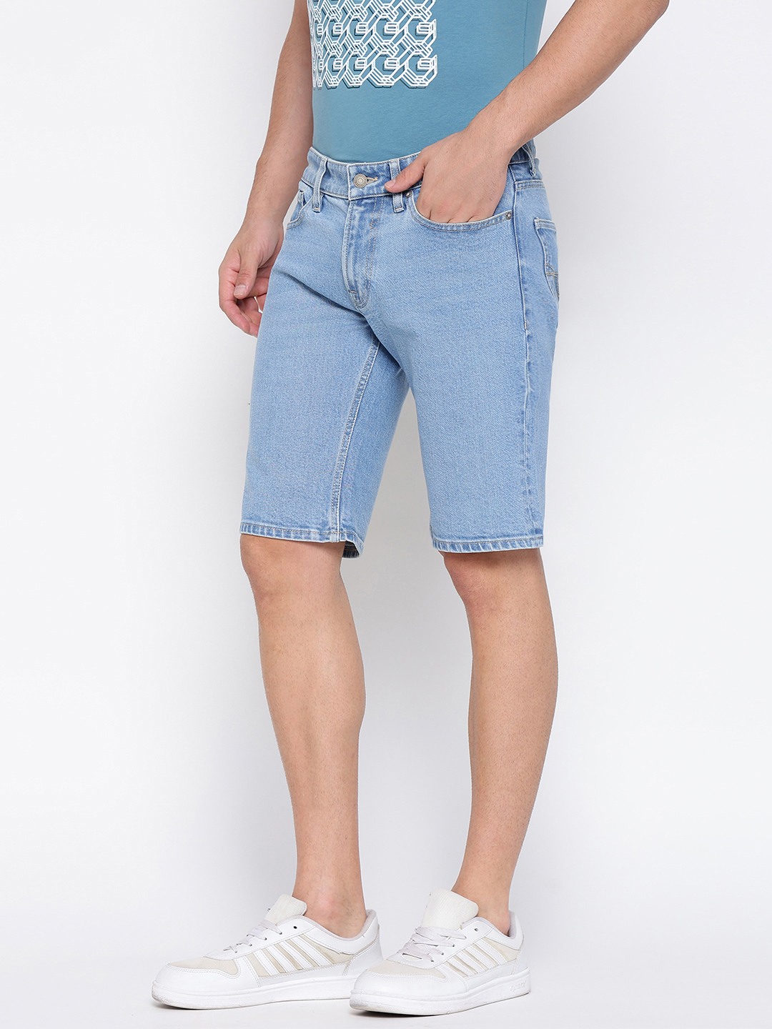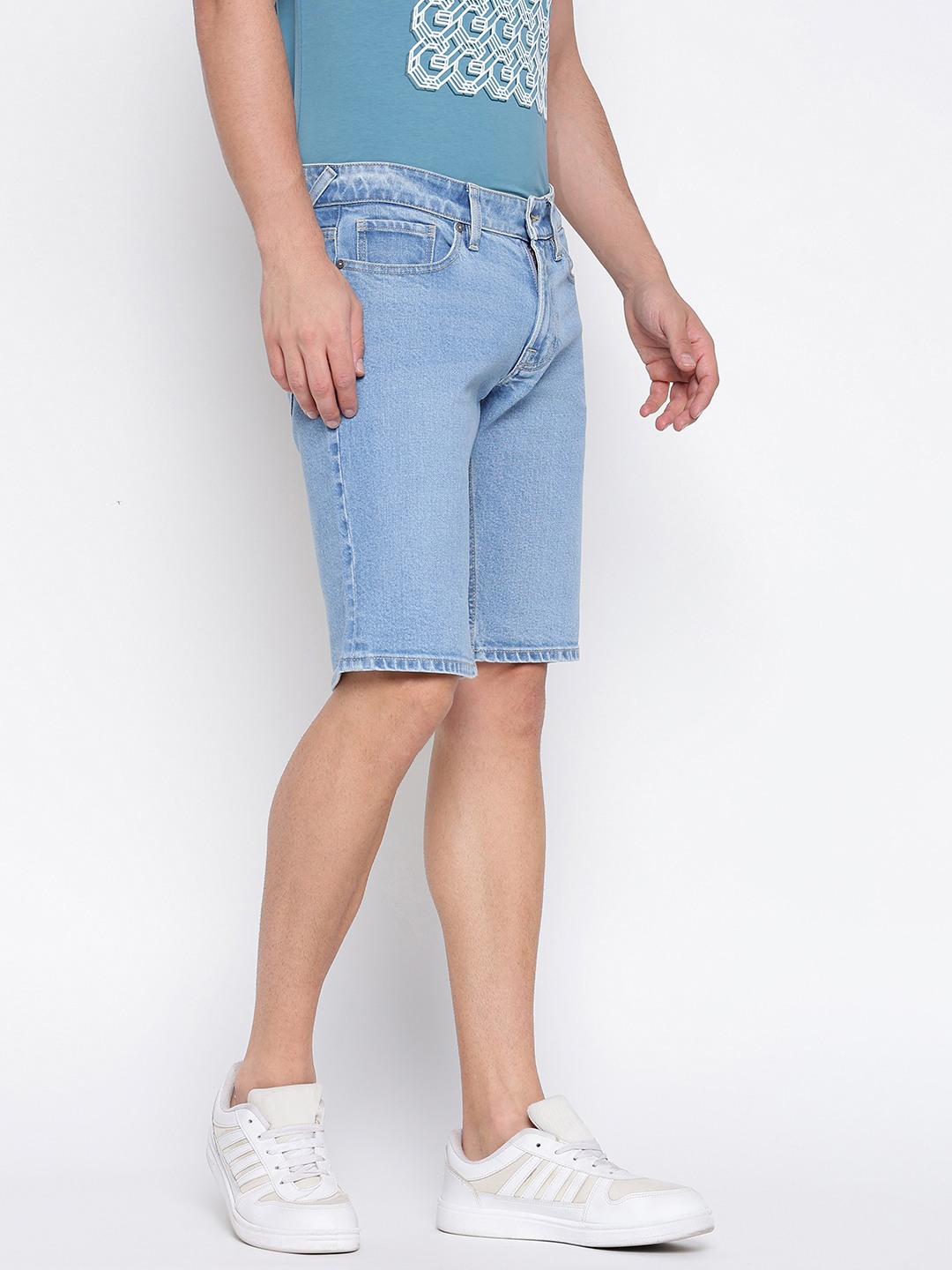 Discover the perfect blend of style and comfort with our light blue denim shorts for men. Crafted from premium cotton fabric, these shorts offer a regular fit that ensures ease of movement and a flattering silhouette. The mid-rise design provides a classic look, while the solid pattern adds a touch of timeless appeal. Featuring a convenient button closure, these shorts are ideal for casual outings or relaxed weekends. Pair them with your favorite tee or shirt for a versatile and effortlessly cool ensemble.