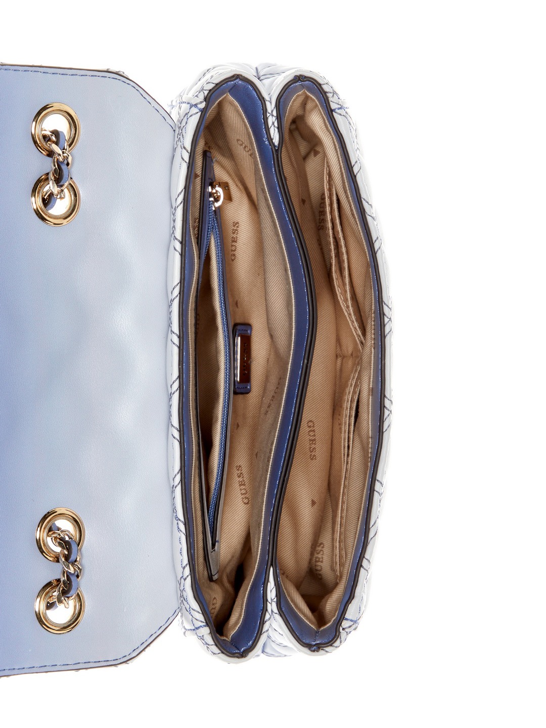 This stylish crossbody bag is perfect for women on the go it features a quilted polyurethane fabric in a classic blue hue the bag has a spacious main compartment with a zipper closure and an adjustable strap for a comfortable fit its compact size makes it ideal for carrying essentials like your phone wallet and keys while still looking chic and sophisticated this versatile bag can be dressed up or down making it perfect for any occasion