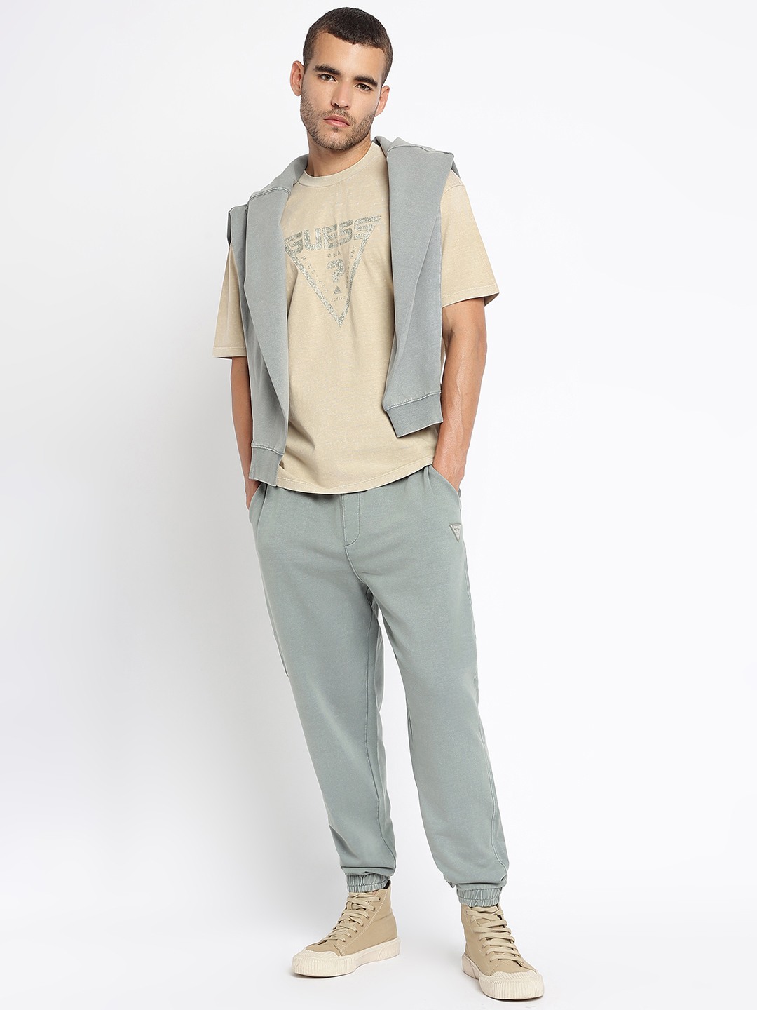 Discover the perfect blend of style and comfort with our green jogger pants for men. Designed with a tapered fit, these joggers offer a modern silhouette that complements any casual look. The solid pattern adds a touch of sophistication, making them versatile for various occasions. Crafted from a premium cotton blend fabric, they ensure breathability and softness for all-day wear. The mid-rise design provides a comfortable fit, while the drawstring closure allows for easy adjustments. Whether you're lounging at home or heading out, these jogger pants are your go-to choice for effortless style and comfort.