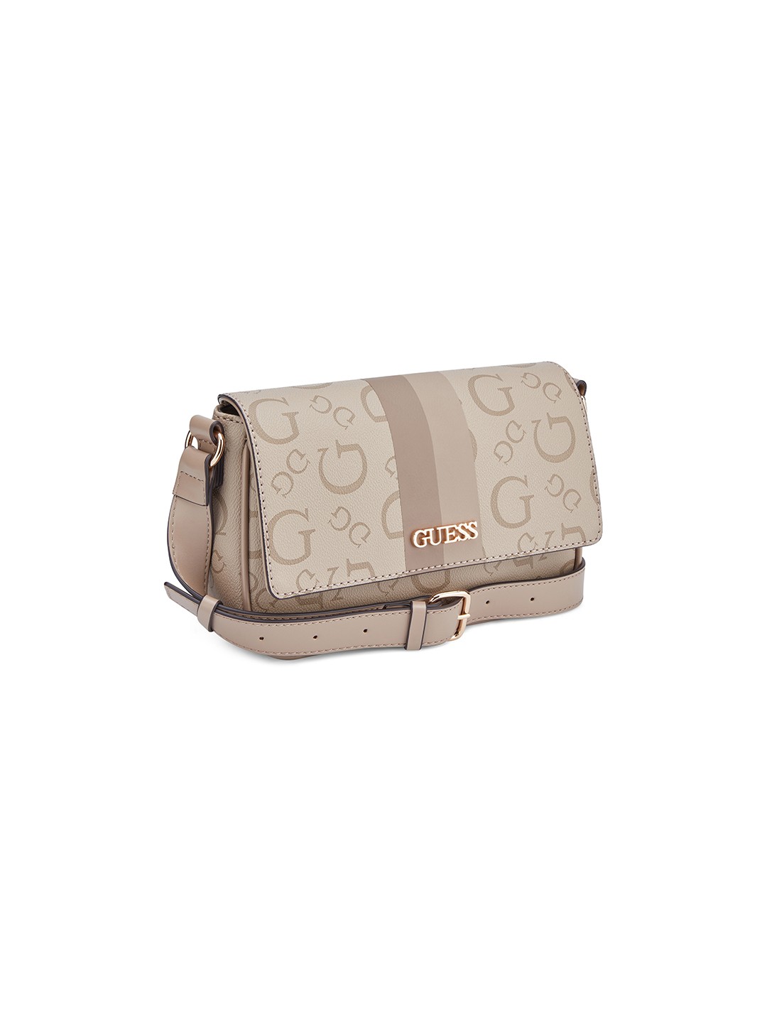 Taupe Printed Magnetic Snap Wester Flap Crossbody Bag
