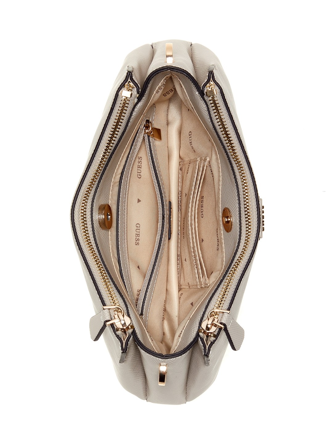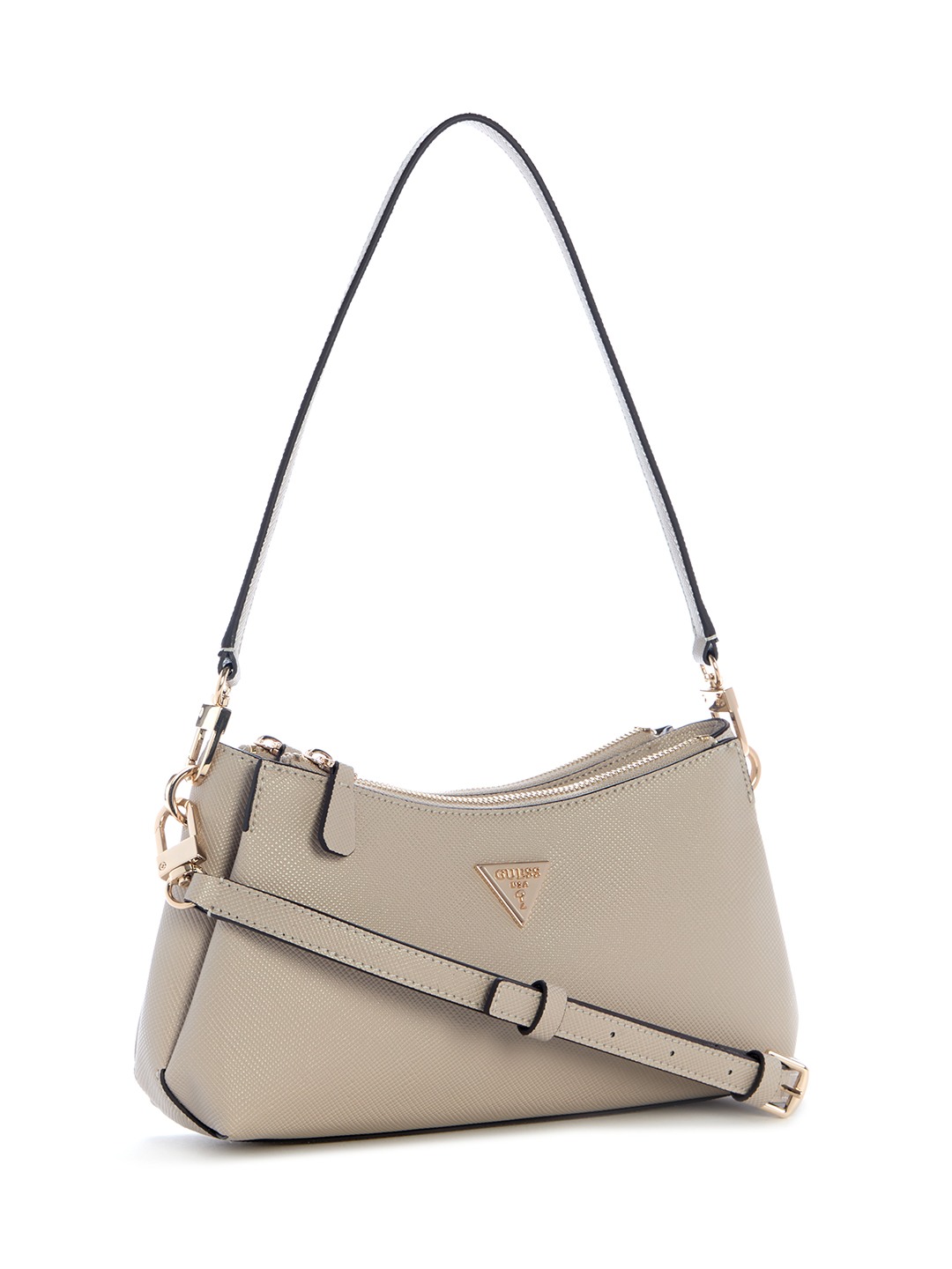 Taupe Solid Zipper Noelle 3 Compartment Mini Crossbody Bag