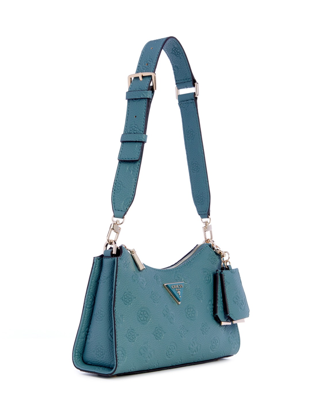Teal Blue Self-Design Shoulder Bag