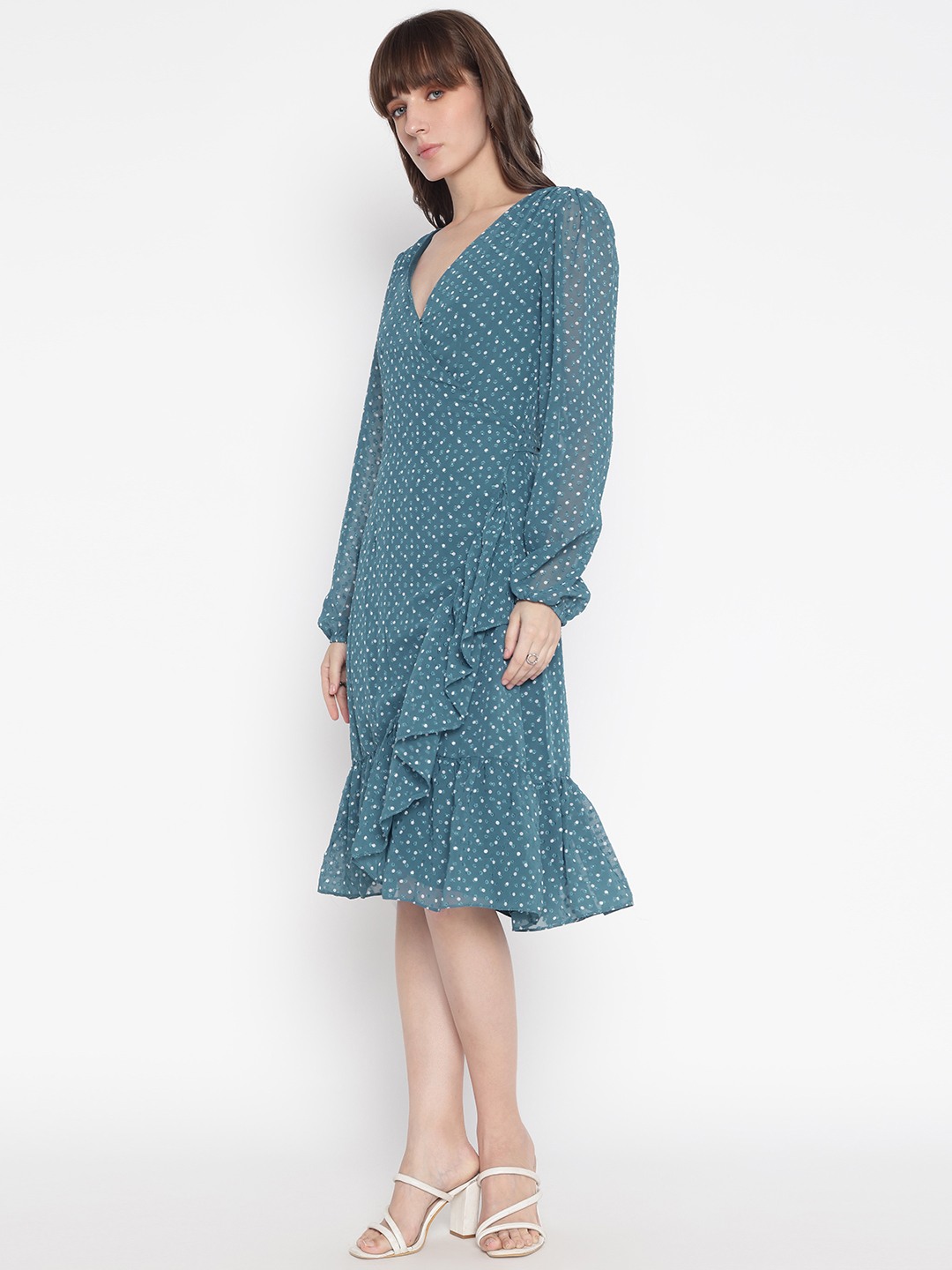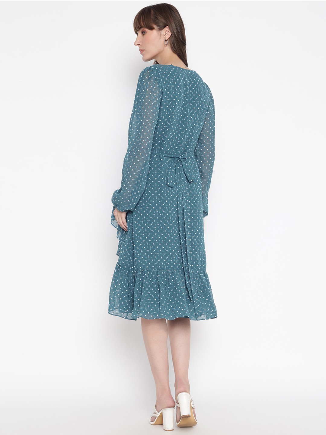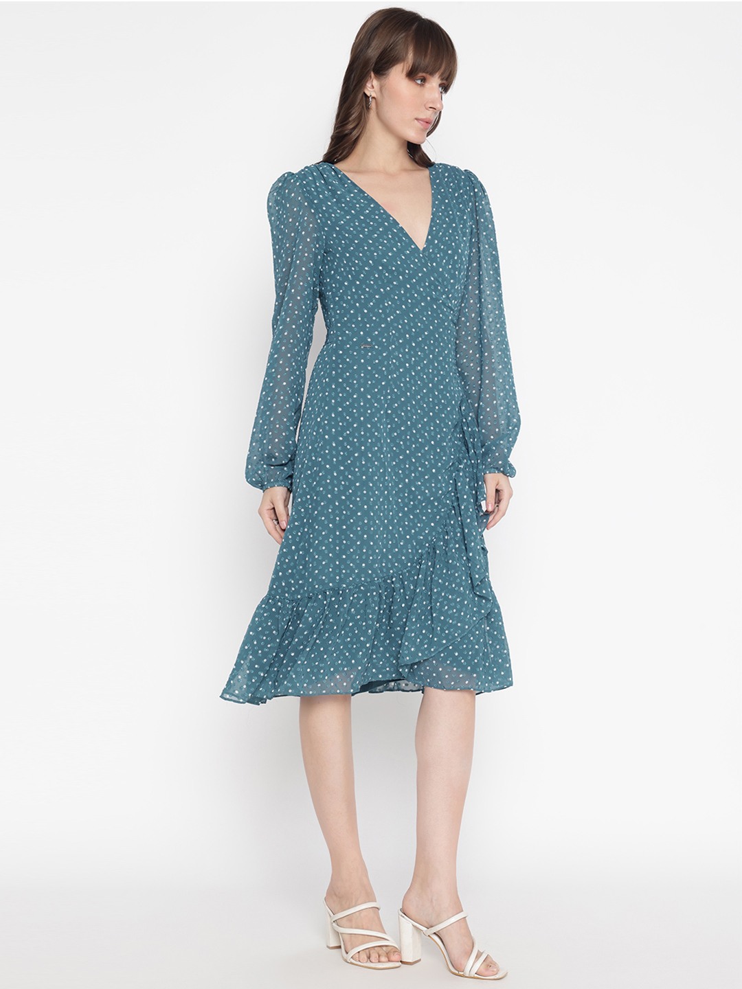 Elevate your wardrobe with our stunning teal dress, designed for the modern woman who appreciates both style and comfort. This regular-fit dress features a captivating printed pattern that adds a touch of elegance to any occasion. The full sleeves and V-neckline create a flattering silhouette, while the 100% polyester fabric ensures a soft, luxurious feel. With its convenient pull-on closure, this dress is as easy to wear as it is beautiful. Perfect for day-to-night transitions, it's a must-have addition to your collection.