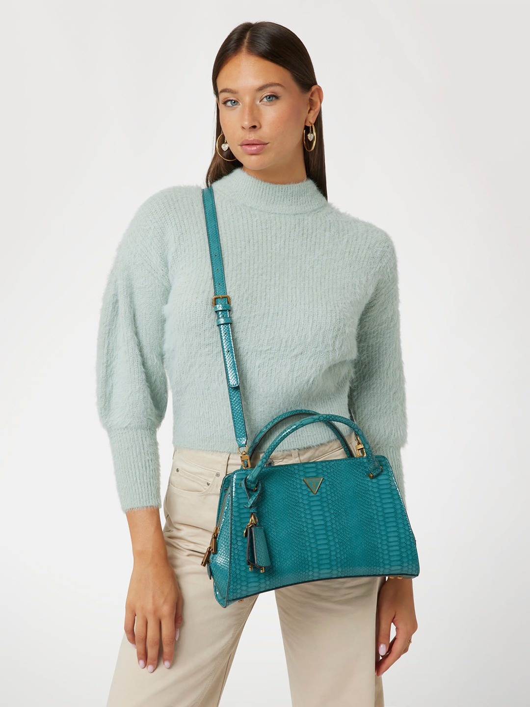 Discover the perfect blend of style and functionality with our Satchel Bag in a stunning teal color. Crafted from high-quality PU fabric, this bag features an eye-catching snake print pattern that adds a touch of sophistication to any outfit. Designed for the modern woman, it offers ample space for your essentials with multiple compartments for easy organization. The adjustable strap ensures comfort, while the sleek design makes it ideal for both casual outings and professional settings. Elevate your accessory game with this chic satchel bag.