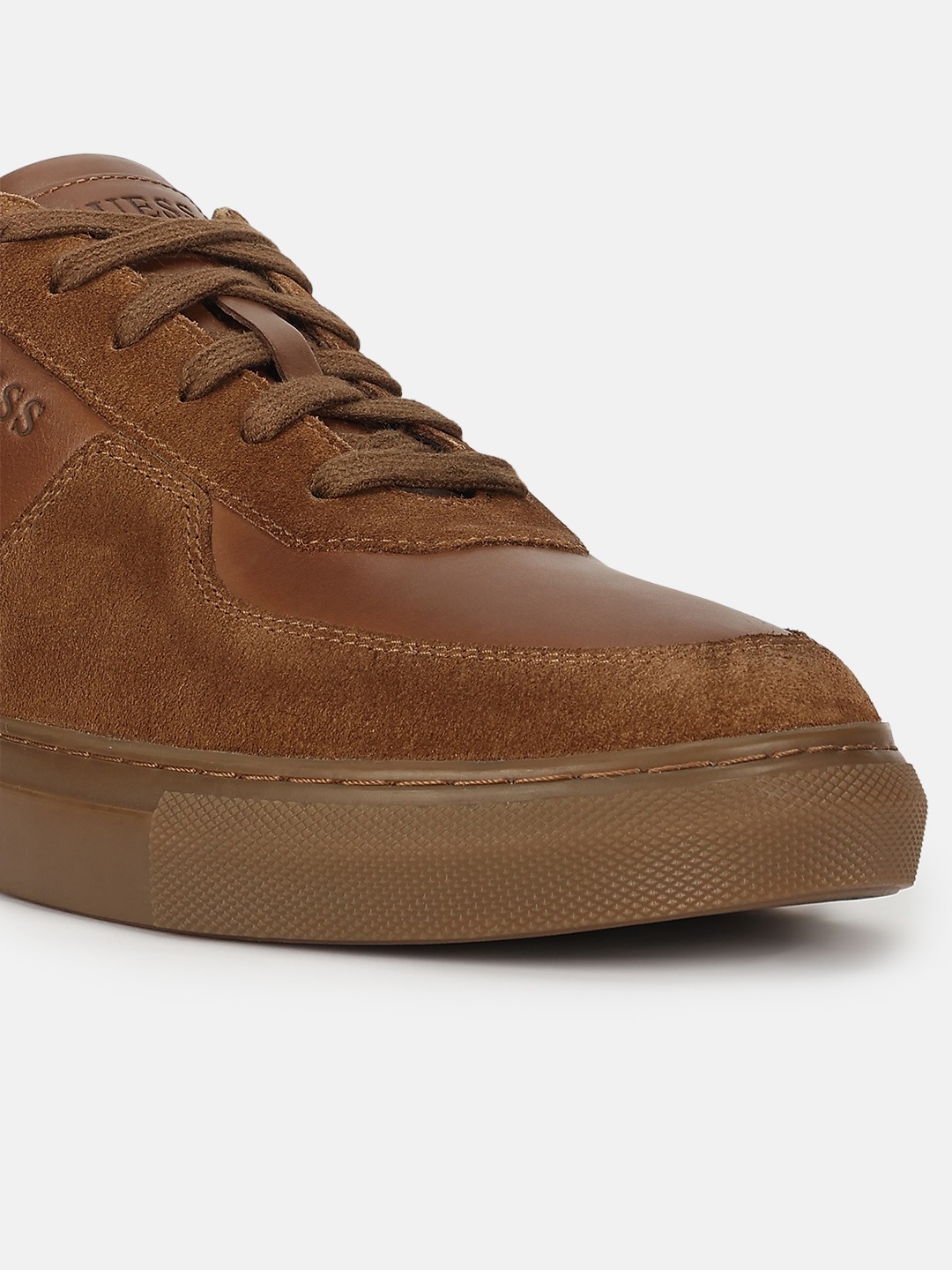 Introducing our basket sneakers in a rich brown color crafted from premium leather for men who appreciate style and comfort. These sneakers feature a solid pattern that effortlessly complements any casual or semi-formal outfit. Designed with a focus on durability and elegance, the leather fabric ensures a soft yet sturdy feel, making them perfect for everyday wear. The classic basket design offers a timeless appeal while the cushioned insole provides exceptional comfort for all-day wear. Whether you're heading to a casual outing or a weekend adventure, these sneakers are versatile enough to match any occasion. The rubber sole offers excellent grip and stability, ensuring you stay confident on your feet. With their sleek design and superior craftsmanship, these brown leather basket sneakers are a must-have addition to any modern man's wardrobe. Elevate your footwear collection with a pair that combines tradition with contemporary style. Step out in confidence and make a statement wherever you go.