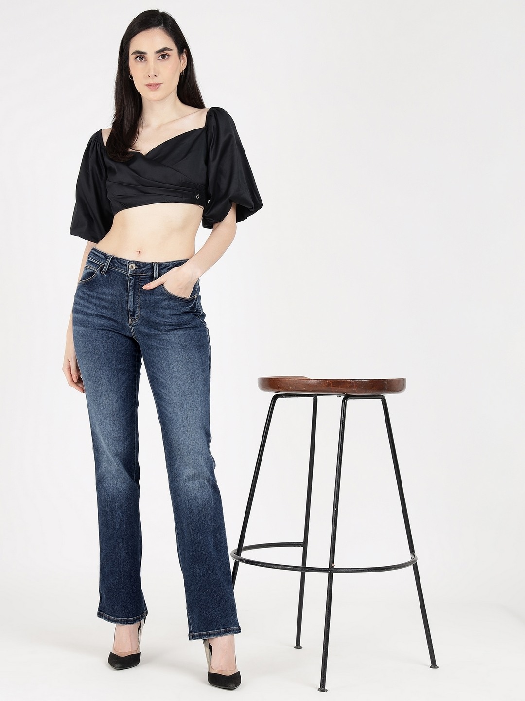 Discover the perfect blend of style and comfort with our blue bootcut jeans for women. Crafted from a premium cotton blend fabric, these jeans offer a soft and breathable feel, ensuring all-day comfort. The mid-rise design provides a flattering fit that complements your natural shape, while the solid pattern adds a touch of classic elegance. Featuring a convenient button closure, these jeans are easy to wear and versatile enough for any occasion. Whether you're dressing up for a night out or keeping it casual, these bootcut jeans are your go-to choice for effortless style.