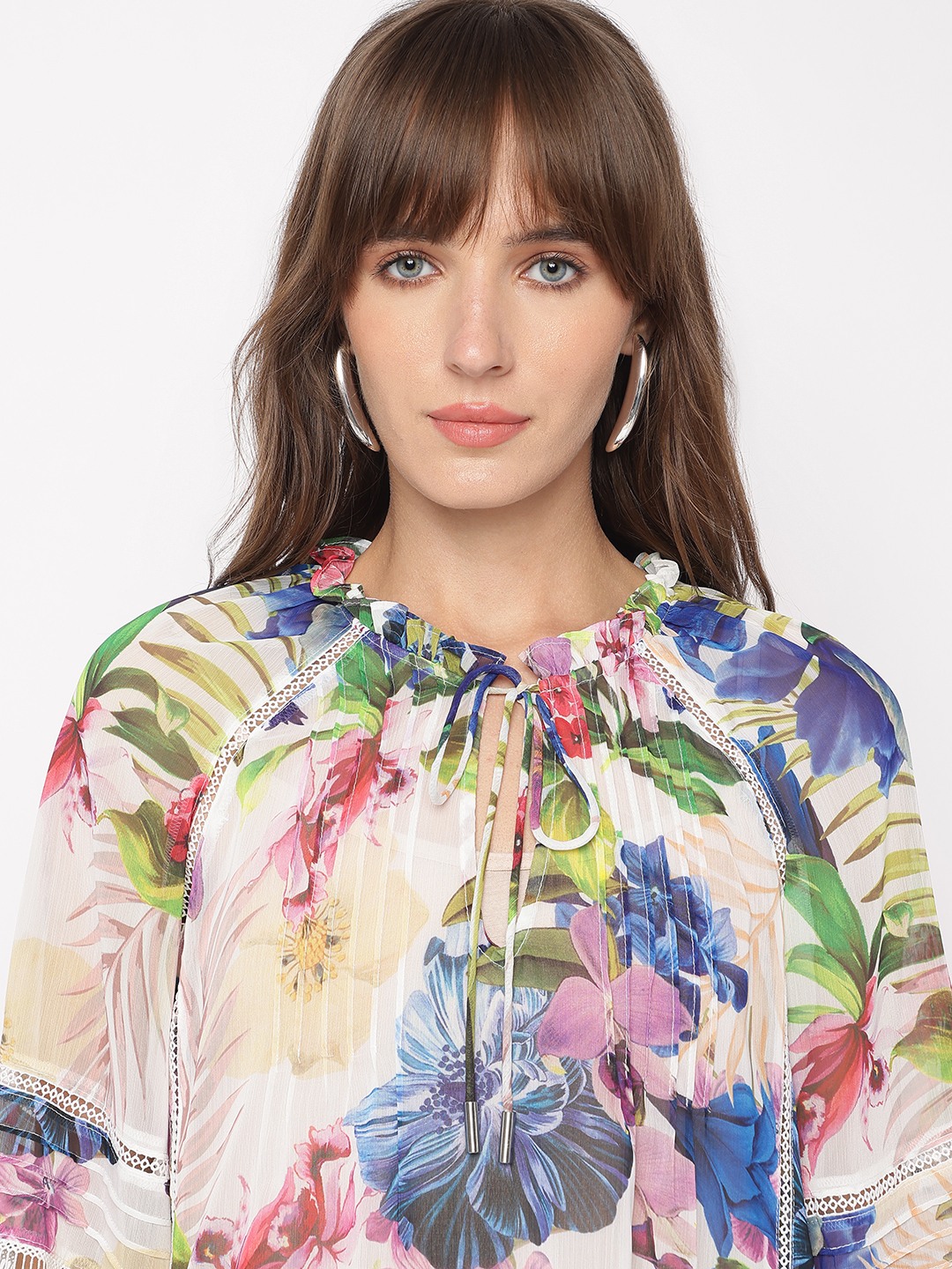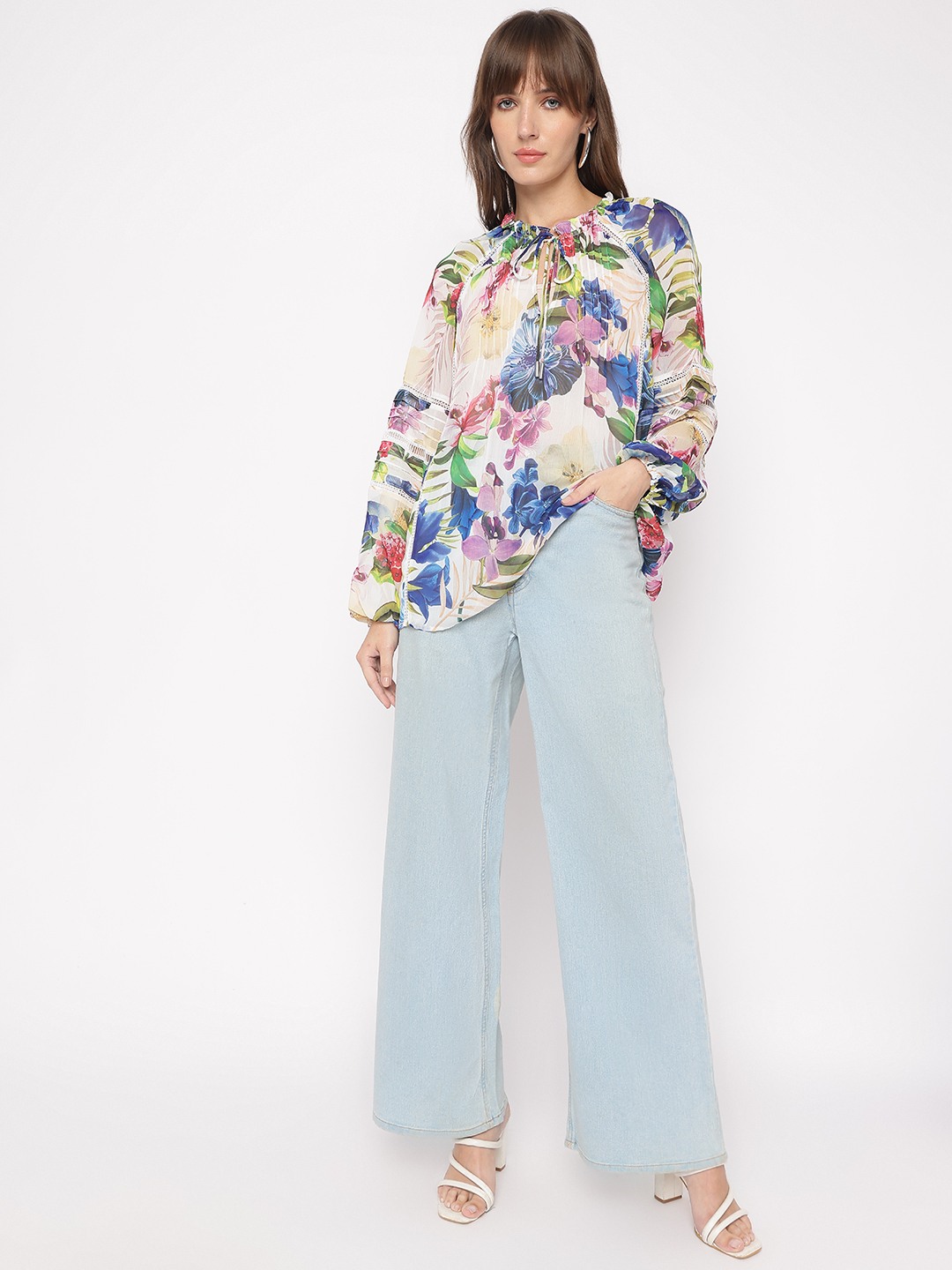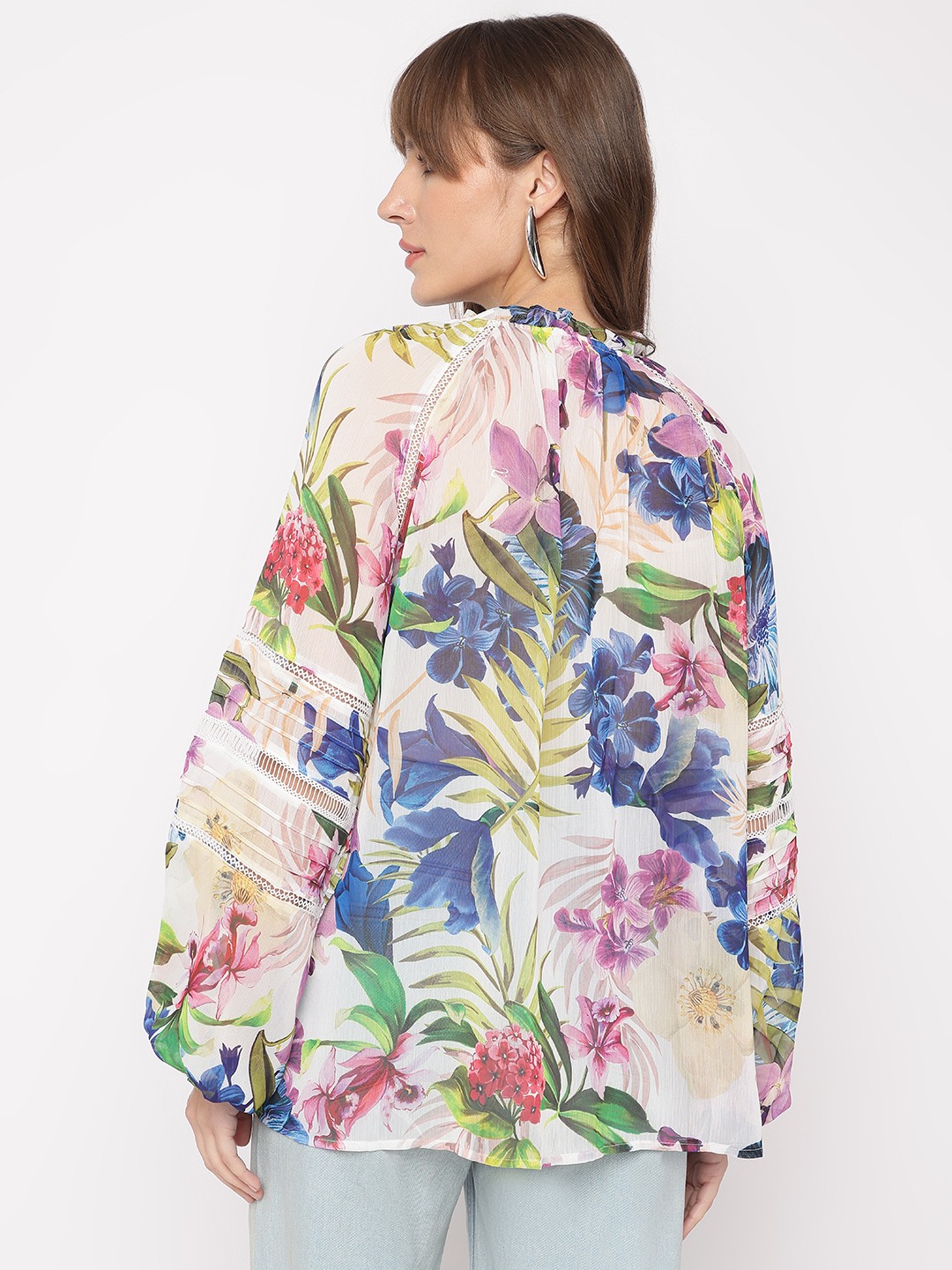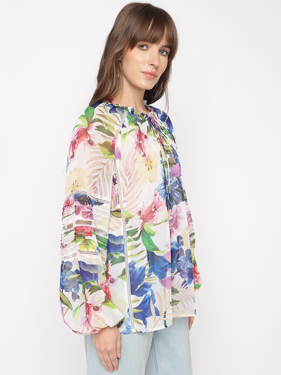 Tropicalia Floral Tie-Up Neckline Full Sleeve Peasant Top