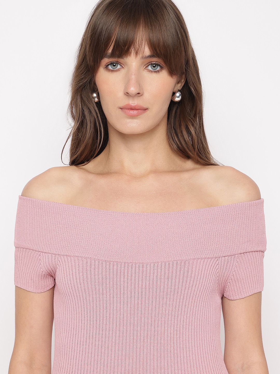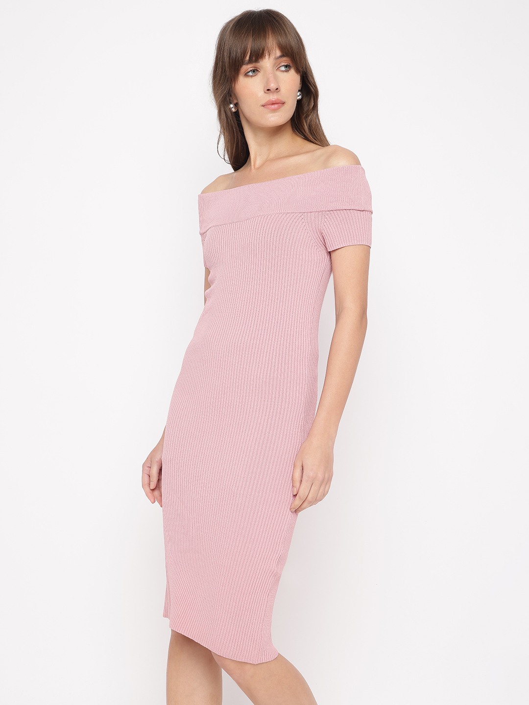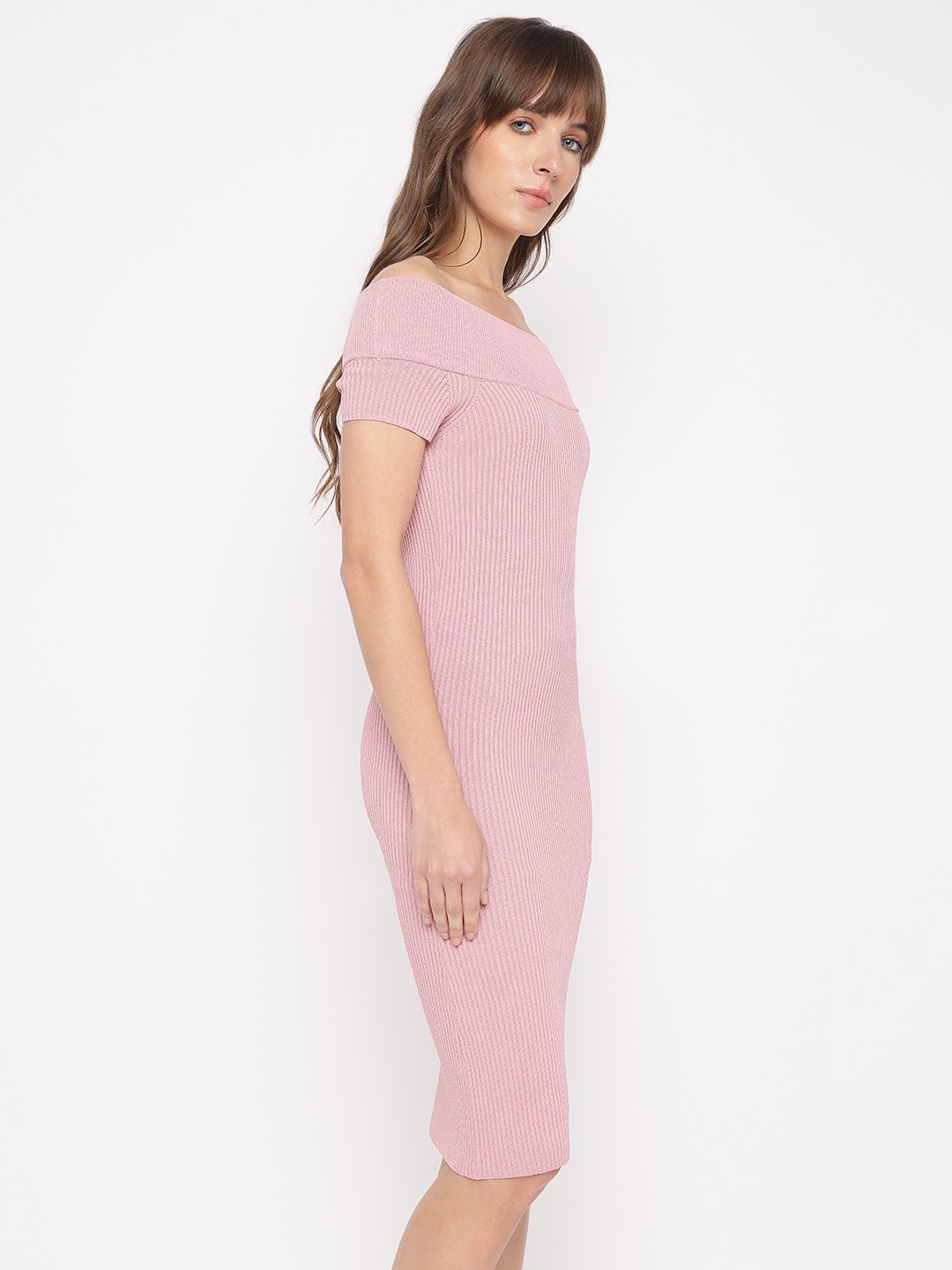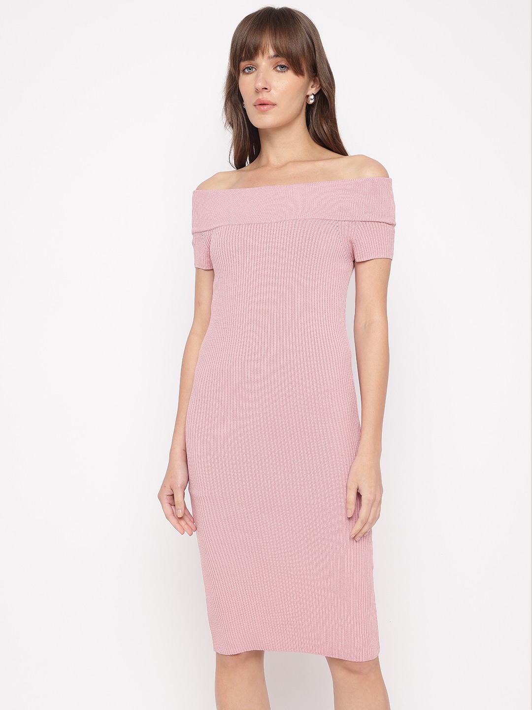 Vintage Blush Textured Off-Shoulder Short Sleeves Lidia Bodycon Dress