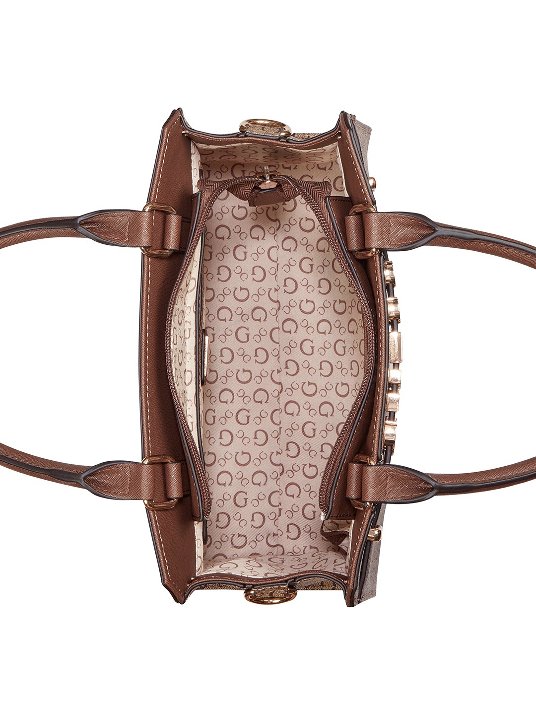 Walnut Printed Zipper Lisbeth Satchel Bag