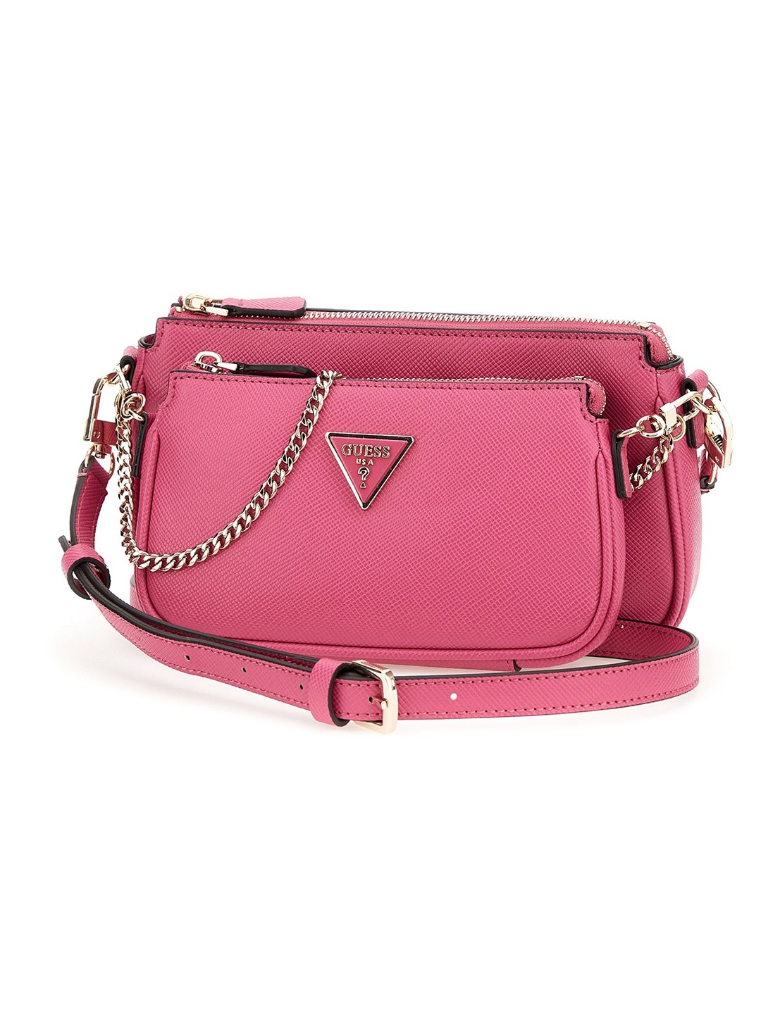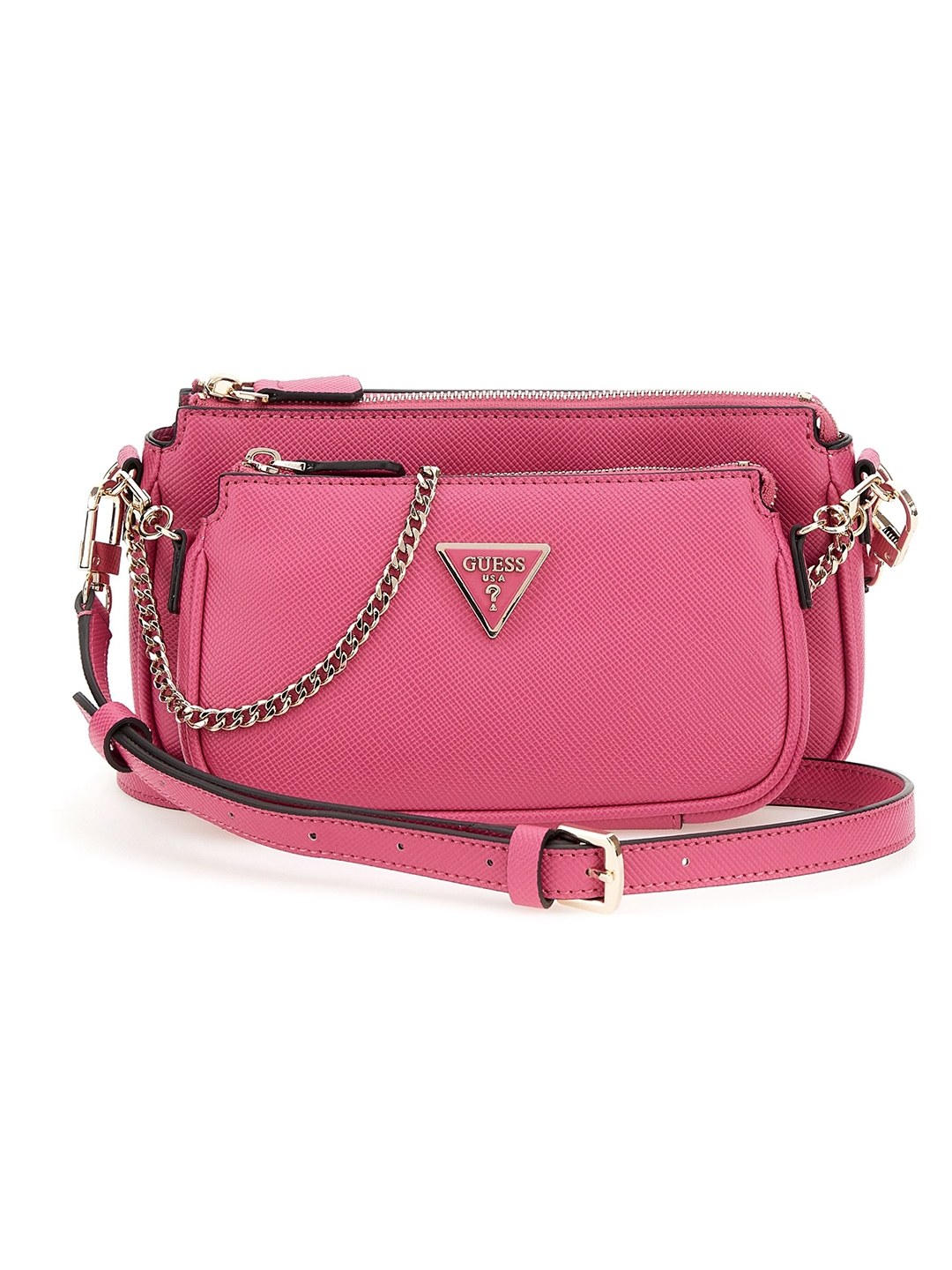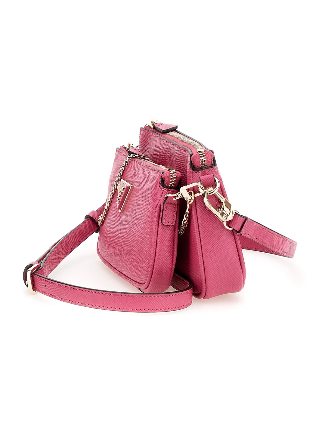 This chic crossbody bag is the perfect blend of style and functionality crafted from durable polyurethane fabric with a textured pattern this bag boasts a spacious main compartment with a zipper closure for secure storage a convenient front pocket provides easy access to essentials while the adjustable strap allows for a comfortable fit whether youre running errands or hitting the town this pink crossbody bag is sure to elevate your look with its modern design and practical features