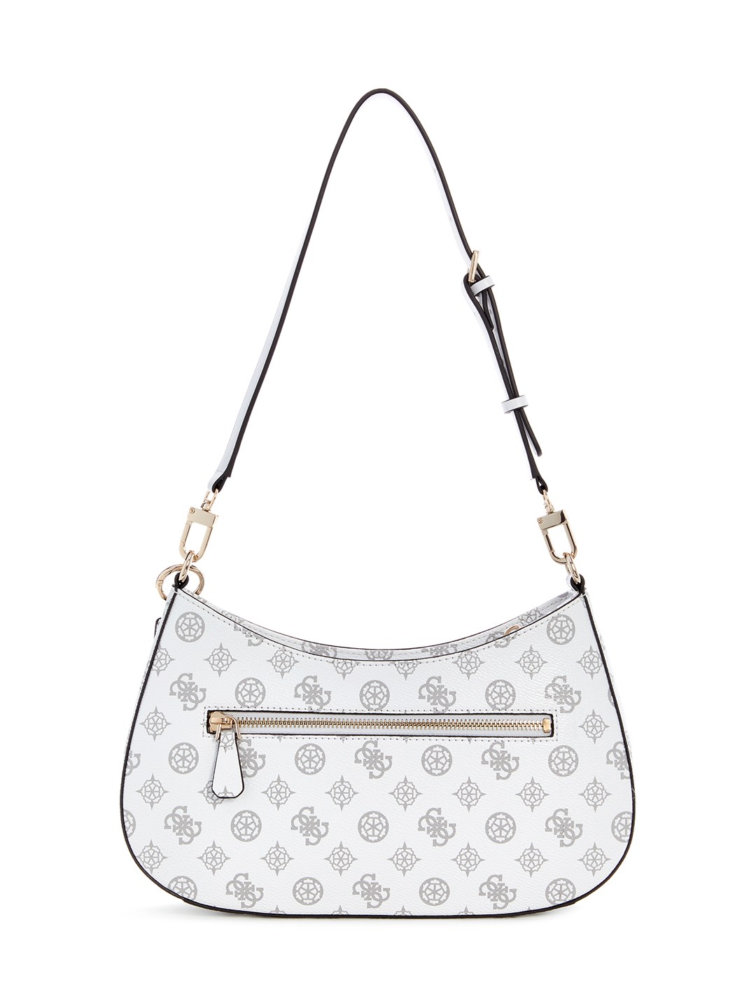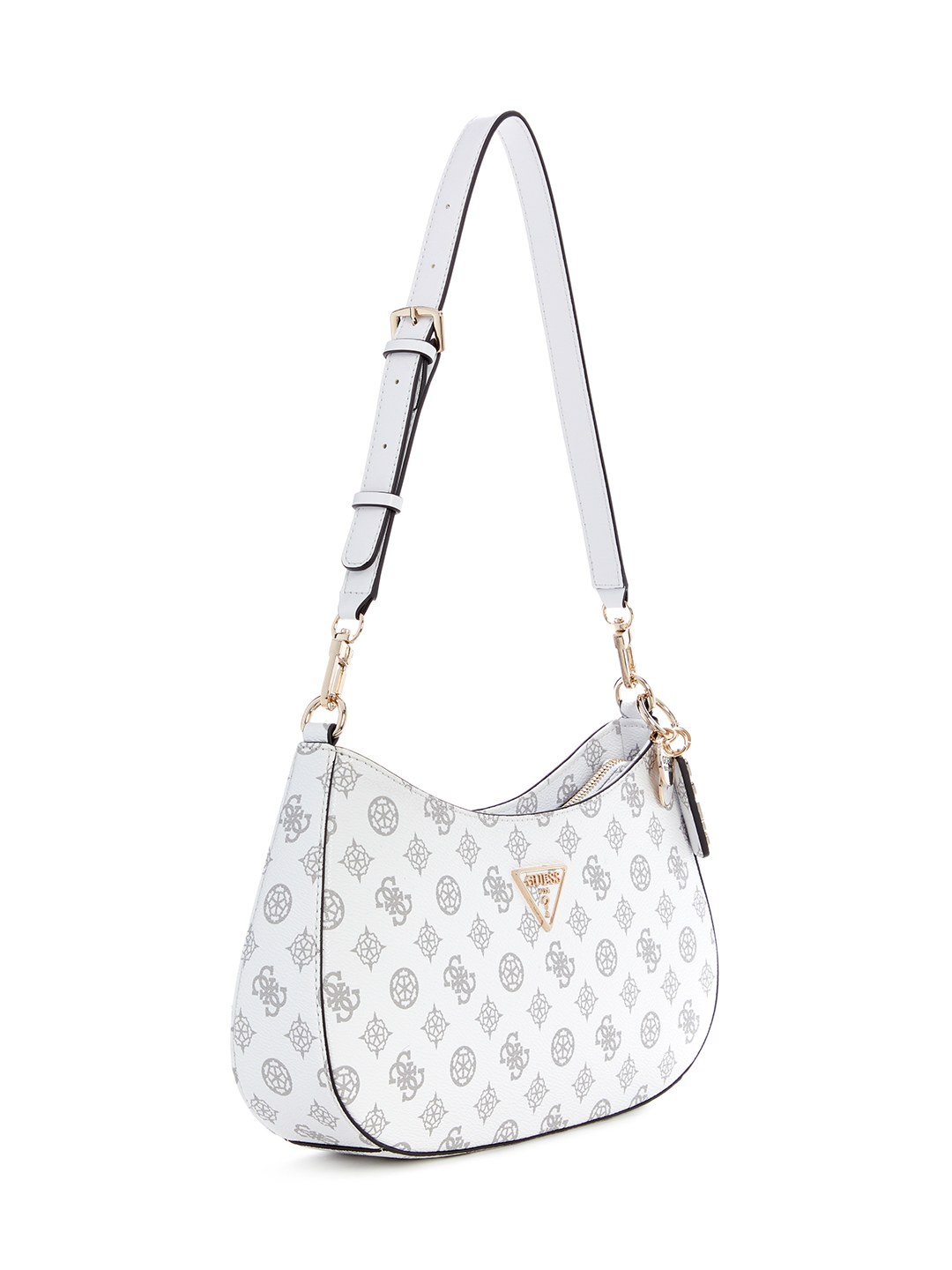 White Logo Printed Noelle Top Zip Shoulder Bag