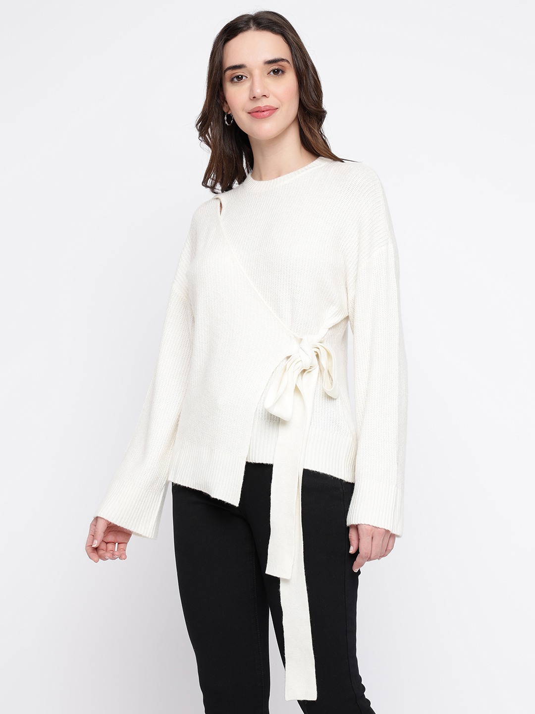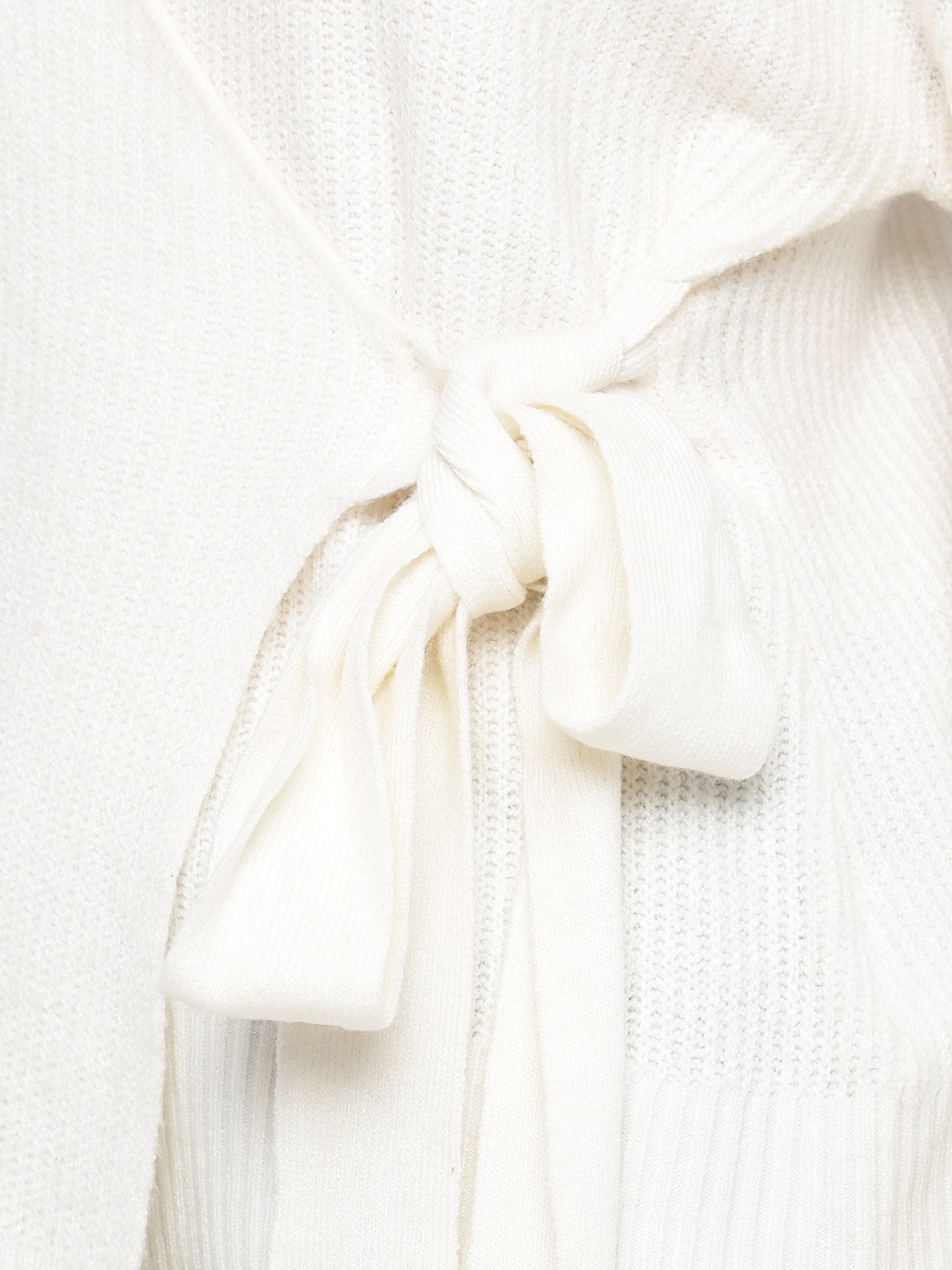 Elevate your wardrobe with our chic white cardigan, designed for the modern woman who values both style and comfort. This regular-fit piece features a sophisticated ribbed pattern that adds texture and depth to any outfit. Crafted from a luxurious blend of 41% polyamide, 35% acrylic, 11% camel hair, 10% polyester, and 3% elastane, it offers warmth and flexibility. The full sleeves and round neckline provide a classic silhouette, while the tie-up closure adds a touch of elegance. Perfect for layering, this cardigan is a versatile staple for any season.