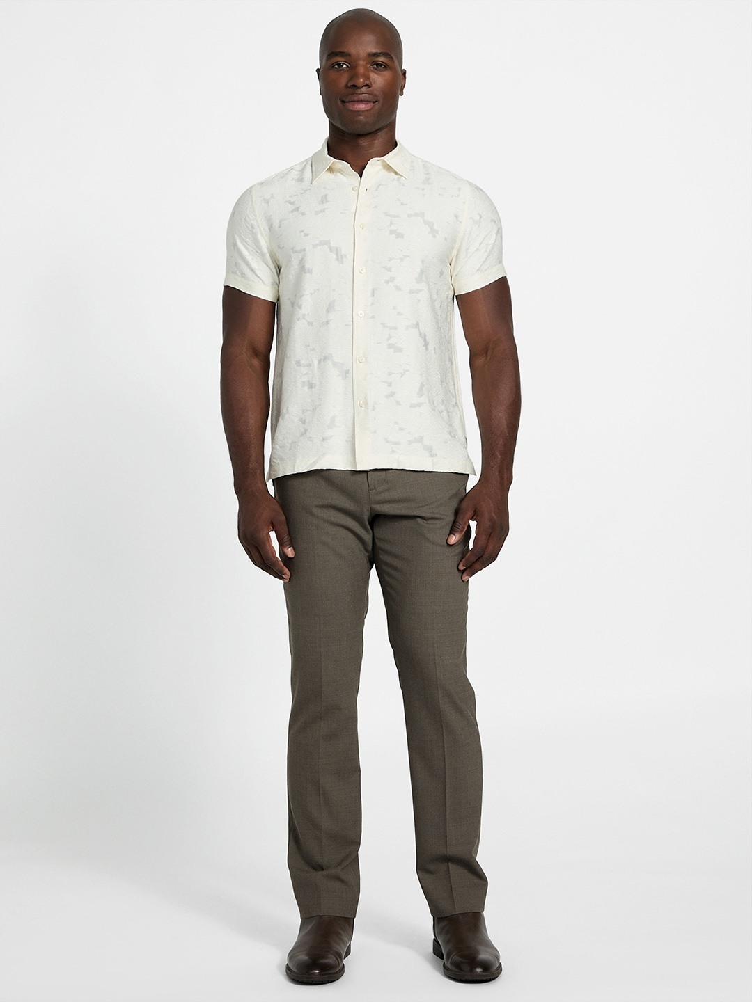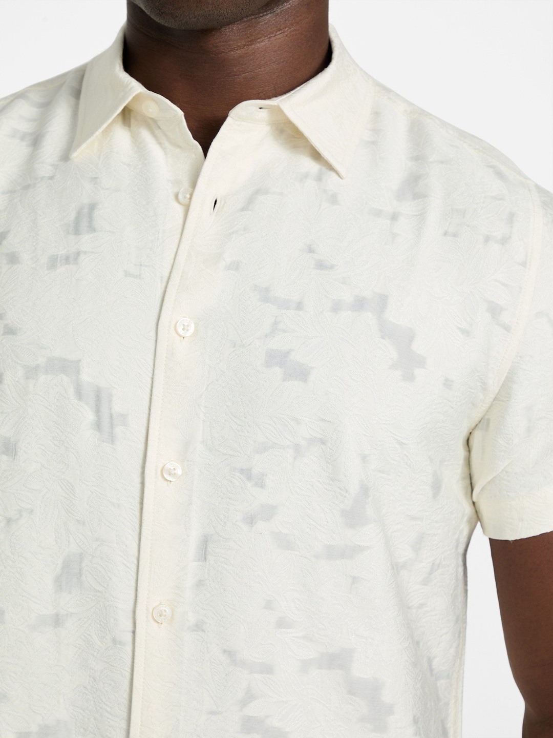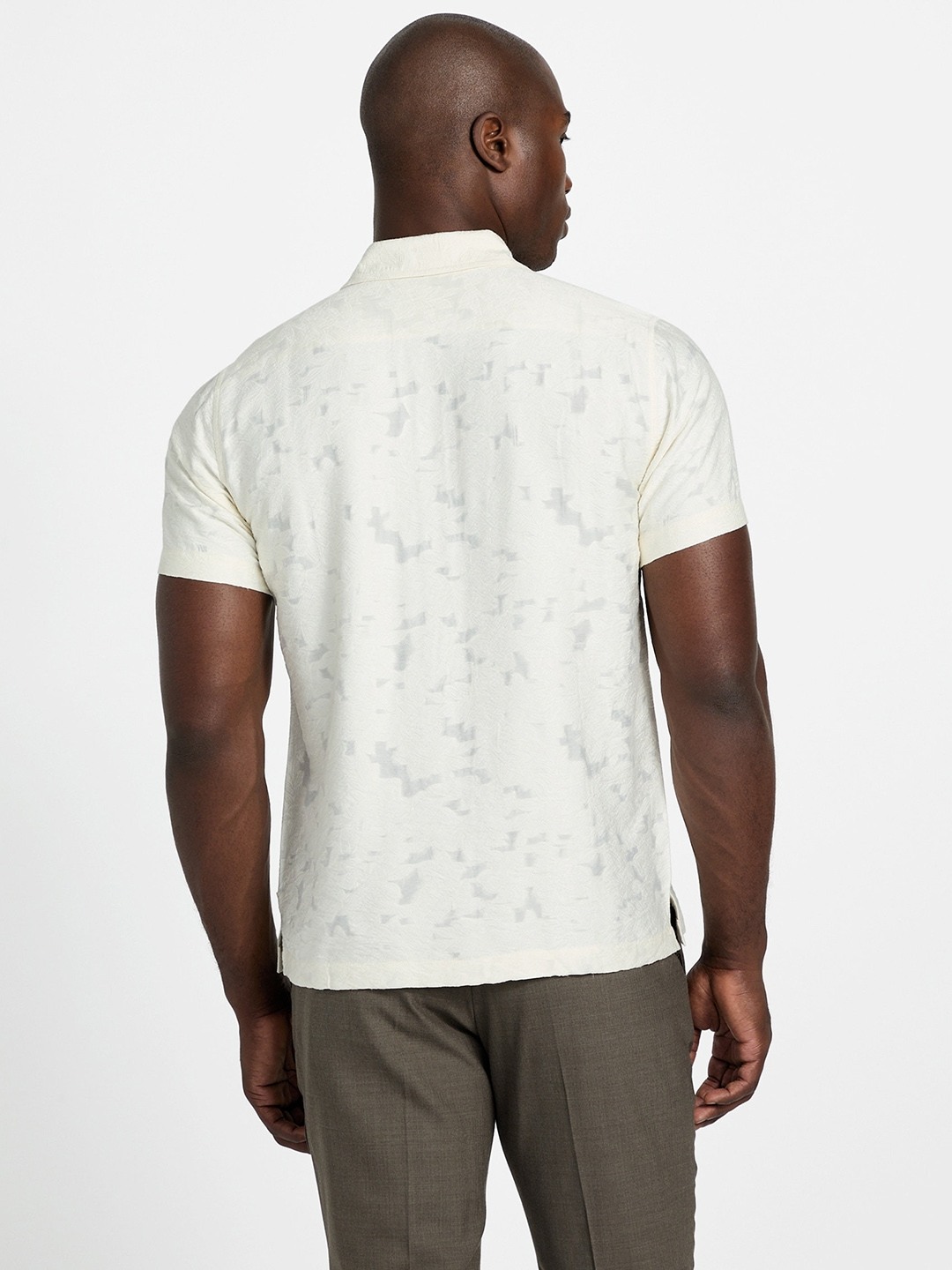 Elevate your style with this crisp white men's shirt, crafted from smooth viscose rayon for all-day comfort. Featuring classic regular sleeves and a versatile Self Design pattern, it’s perfect for both casual and semi-formal occasions. The short sleeves keep you cool, while the spread collar adds a touch of sophistication. Its lightweight, breathable fabric drapes effortlessly, making it a wardrobe essential that combines timeless elegance with modern ease. Perfect for the confident, contemporary man.
