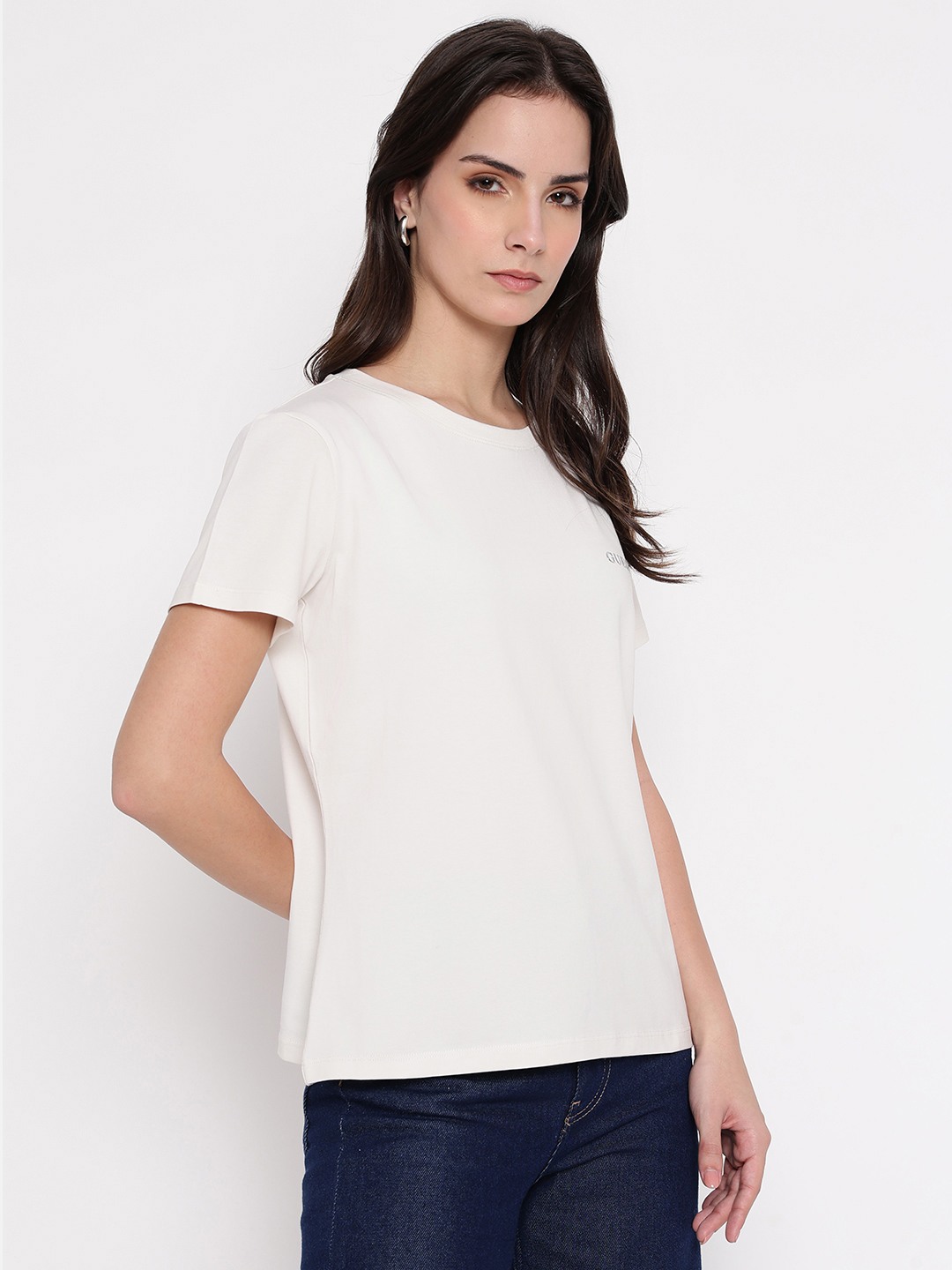White Solid Crew Neck T-shirt
