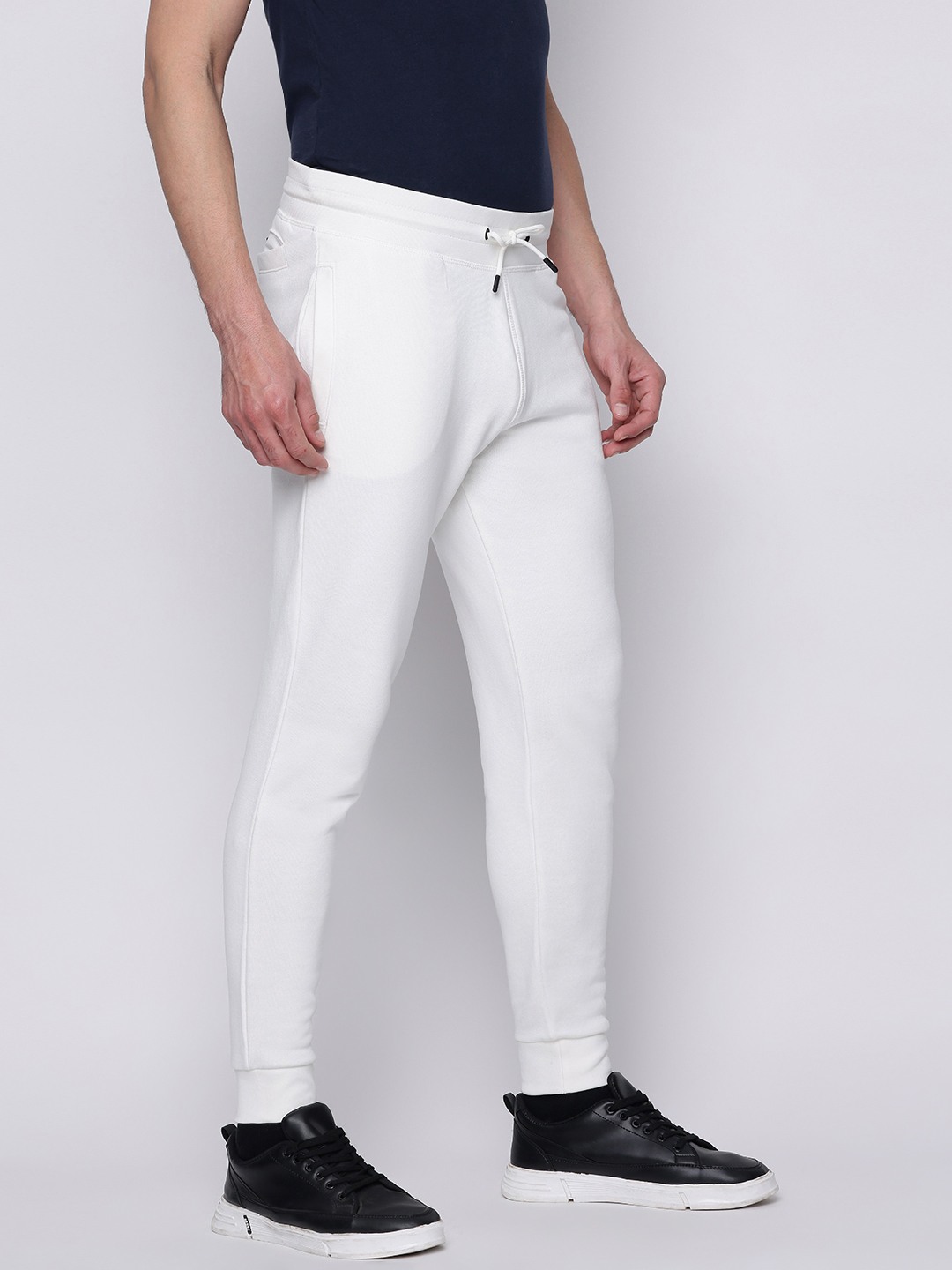 Experience unparalleled comfort and style with our white trackpants, crafted from a premium cotton blend fabric. Designed for the modern man, these regular-fit trackpants offer a sleek silhouette while ensuring maximum breathability and ease of movement. The solid pattern exudes a timeless appeal, making them a versatile addition to any wardrobe. Whether you're hitting the gym or lounging at home, these trackpants promise to keep you looking effortlessly cool and feeling incredibly comfortable.