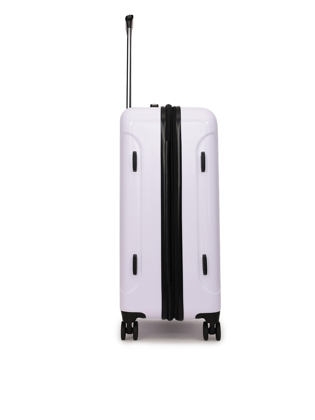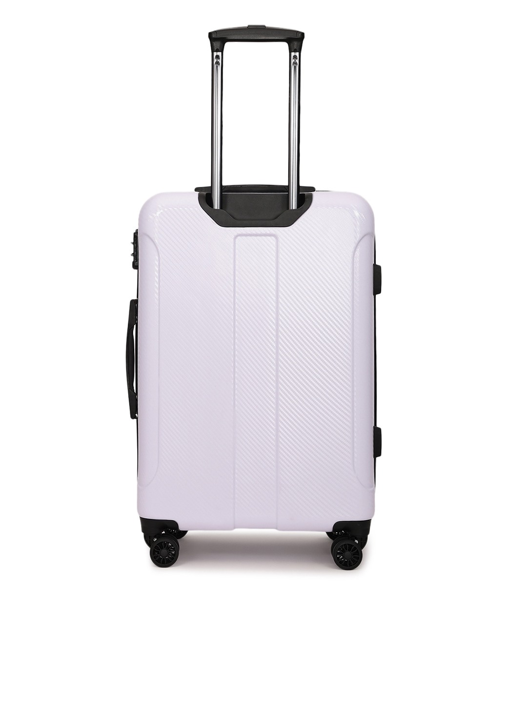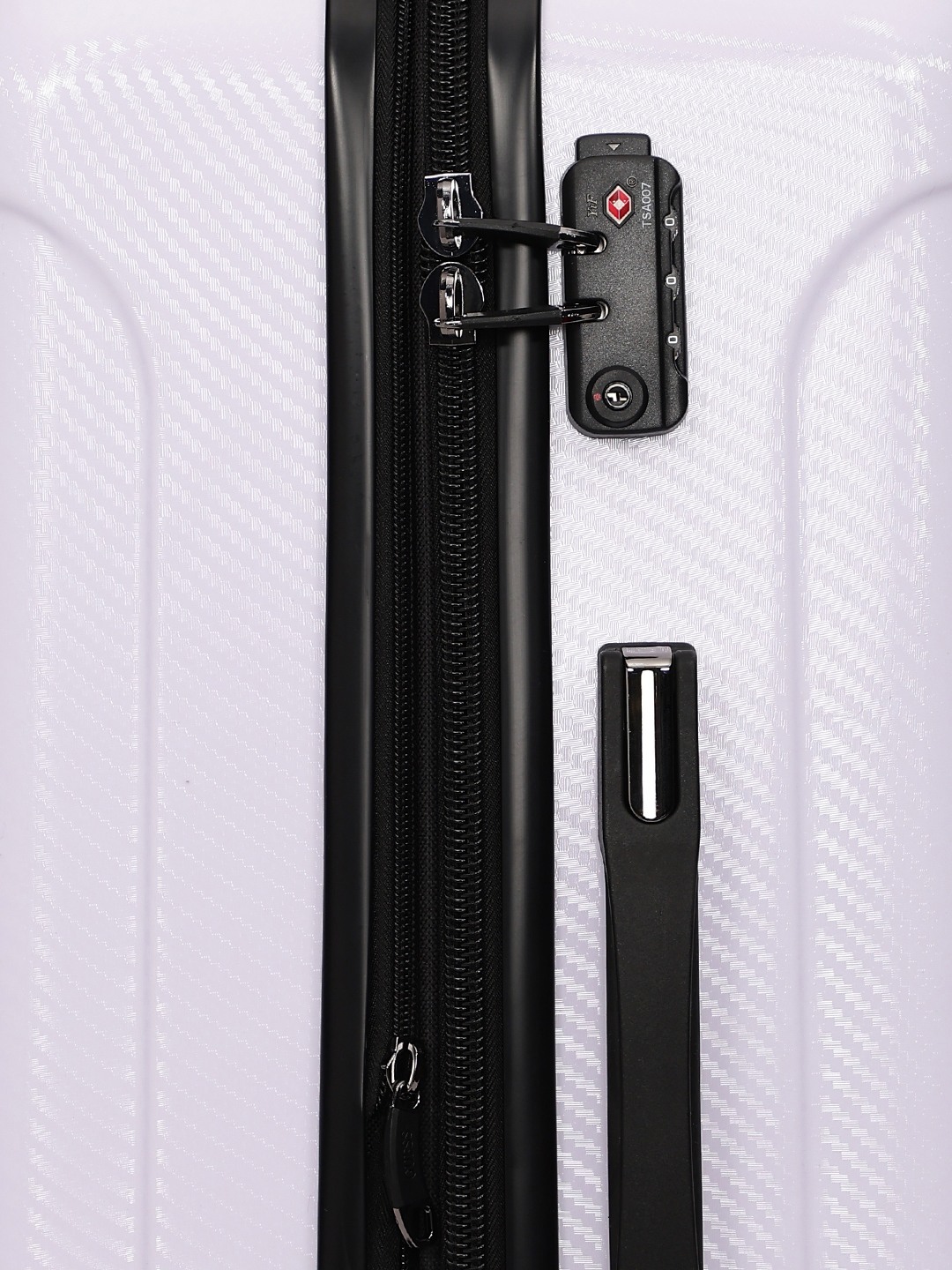 • Discover the perfect travel companion with our white trolley bag designed for women. Crafted from a durable blend of 92% ABS and 8% PC fabric, this trolley bag ensures long-lasting use and resilience. The textured pattern adds a touch of elegance, making it a stylish choice for any journey. Its lightweight design and smooth-rolling wheels offer effortless mobility, while the spacious interior provides ample room for all your essentials. Whether for business or leisure, this trolley bag combines functionality with chic design, ensuring you travel in style.