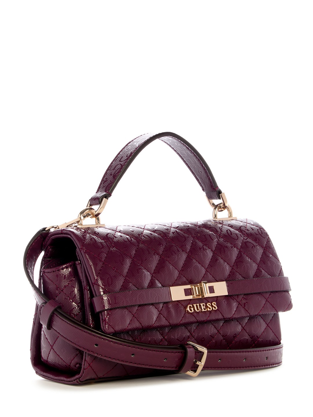 Wine Quilted Idra Top Handle Flap Satchel Bag