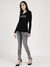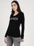 Women Black Embellished Round Neck Short Sleeves T-shirt