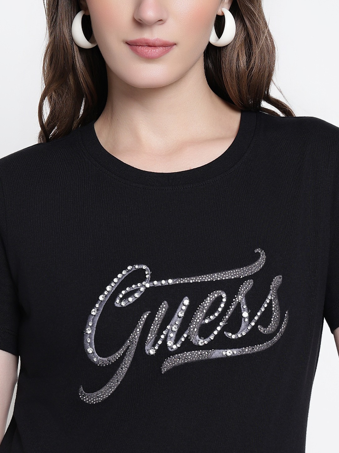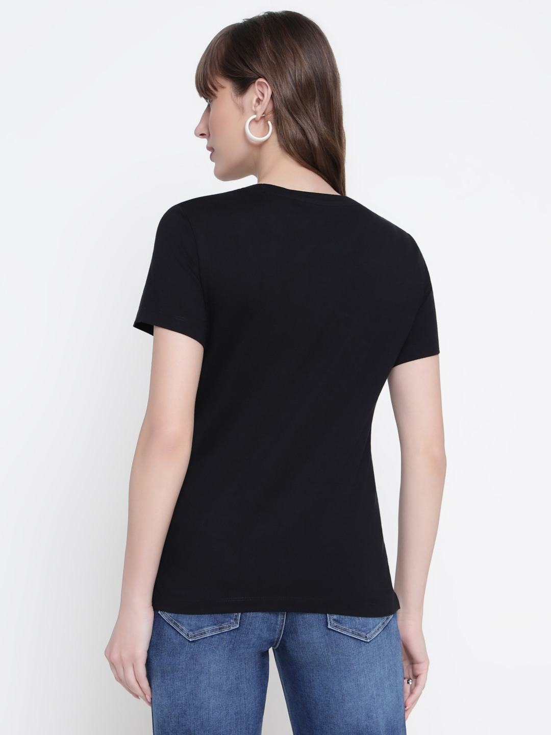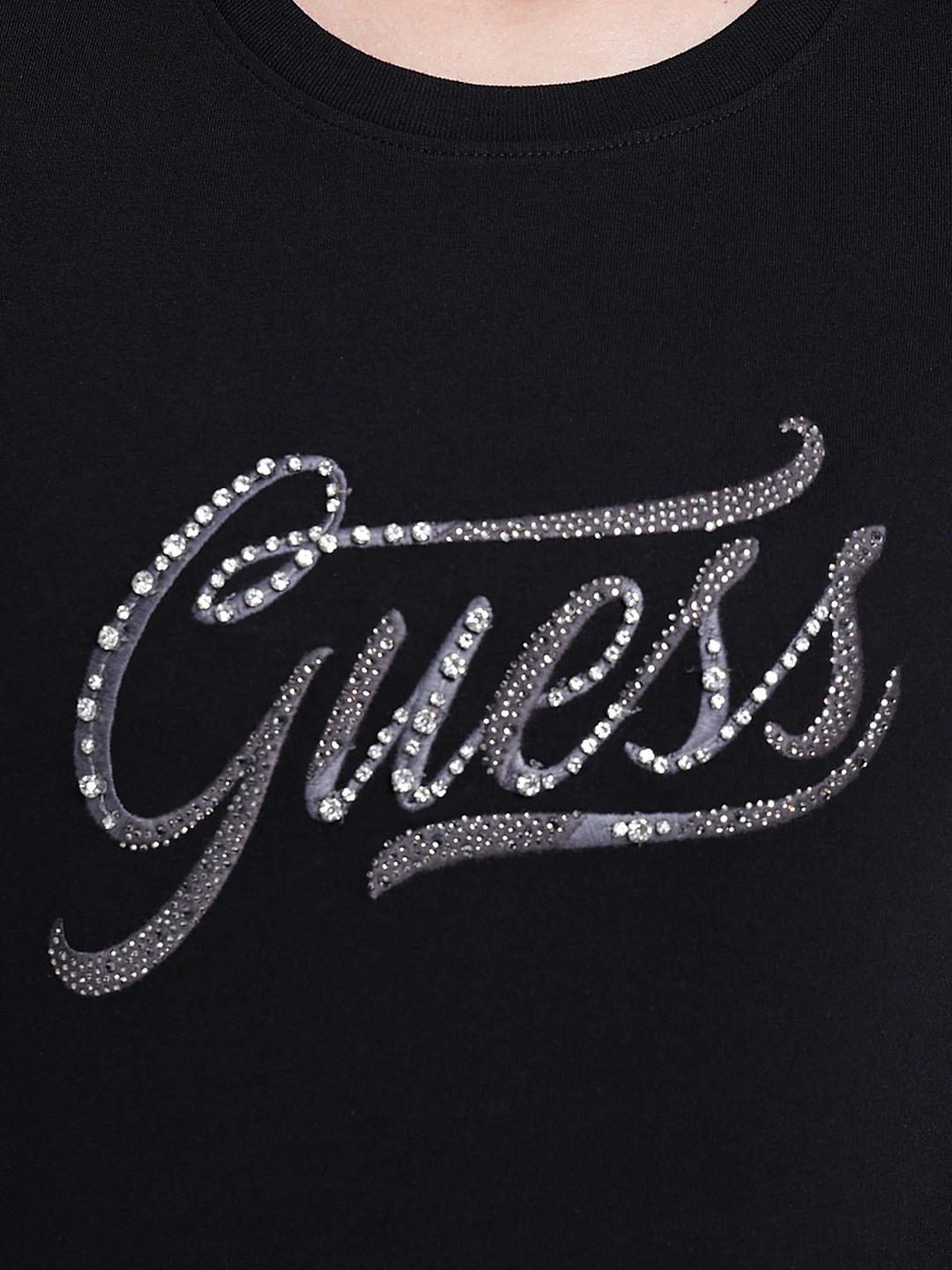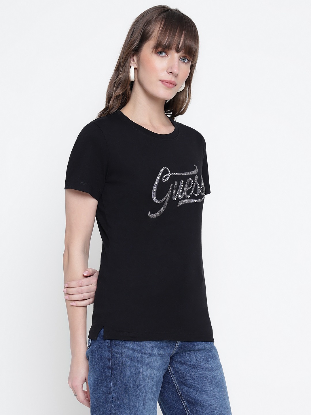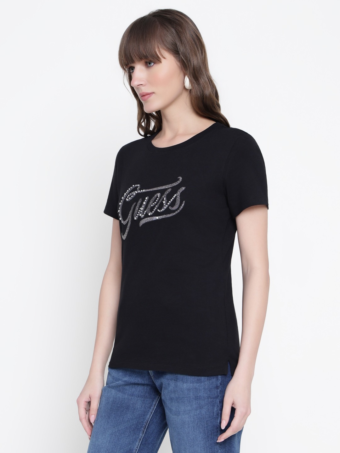 Women Black Embellished Round Neck T-shirt