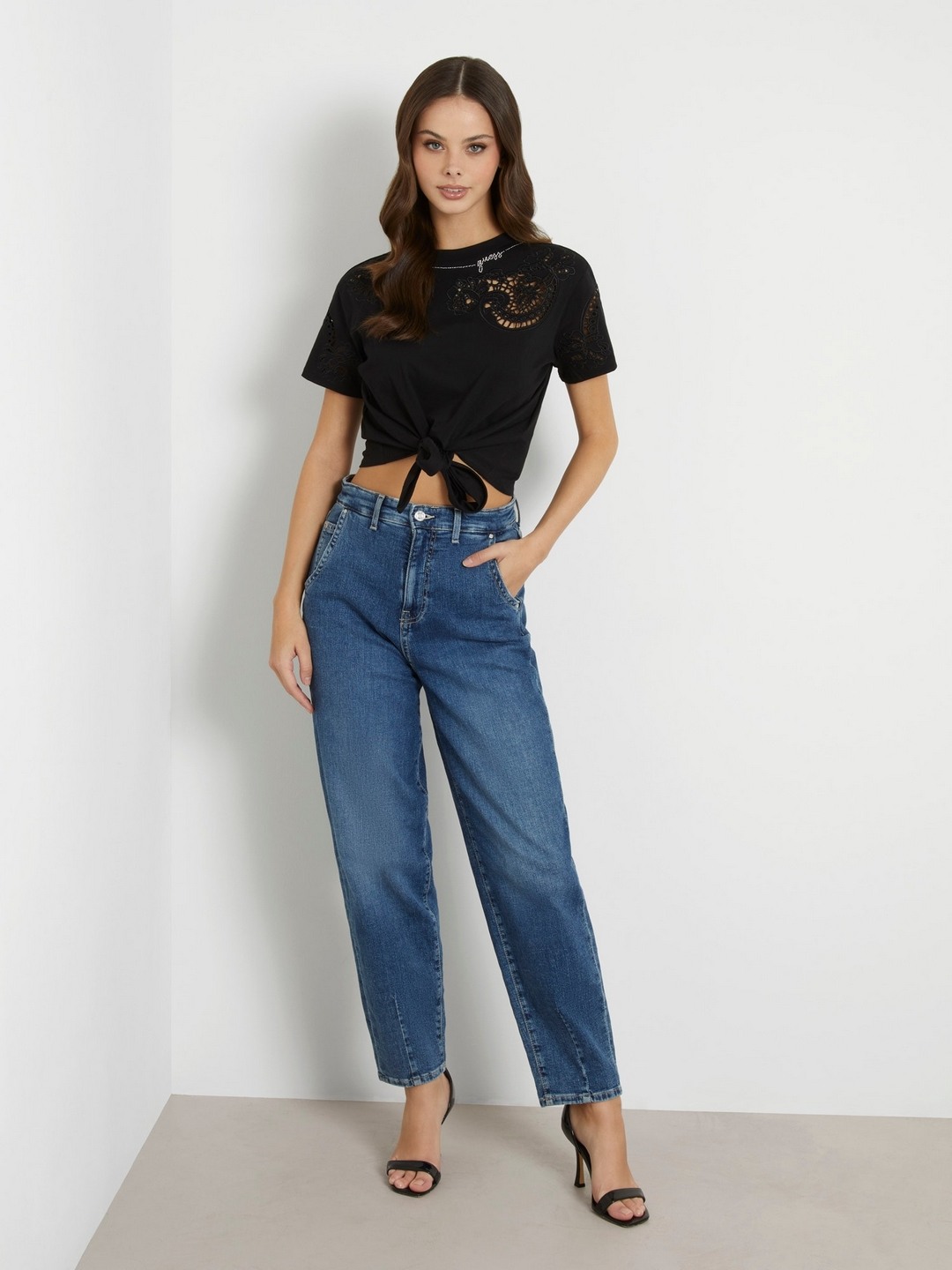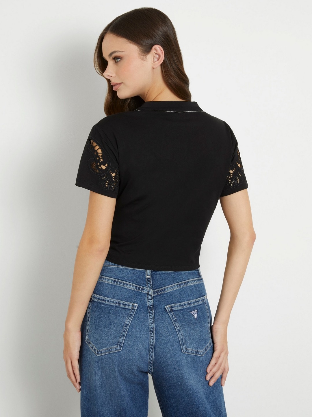 • Guess Women Black Embroidered Round Neck Short Sleeves T-Shirt