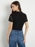 Women Black Embroidered Round Neck Short Sleeves T-Shirt
