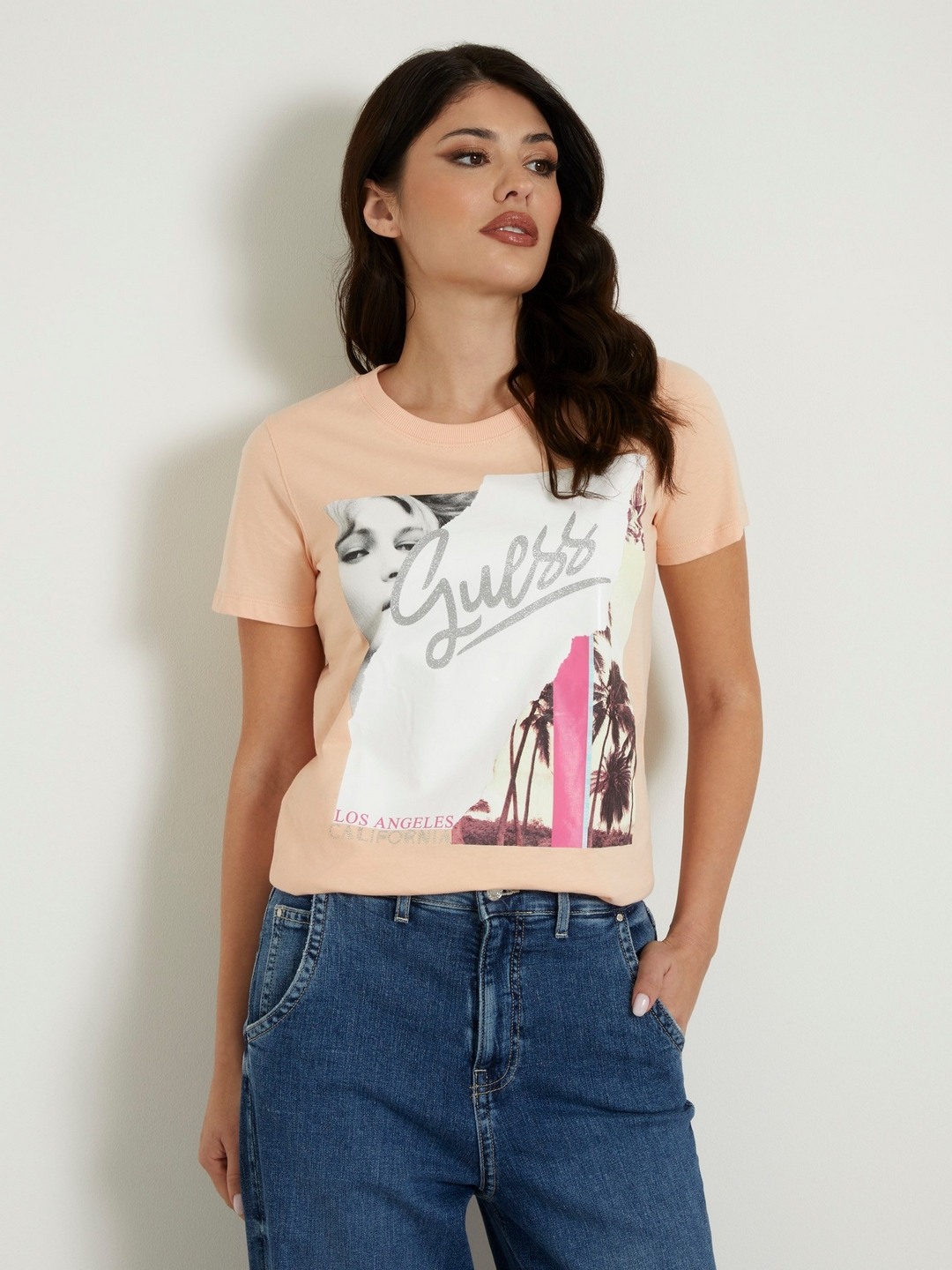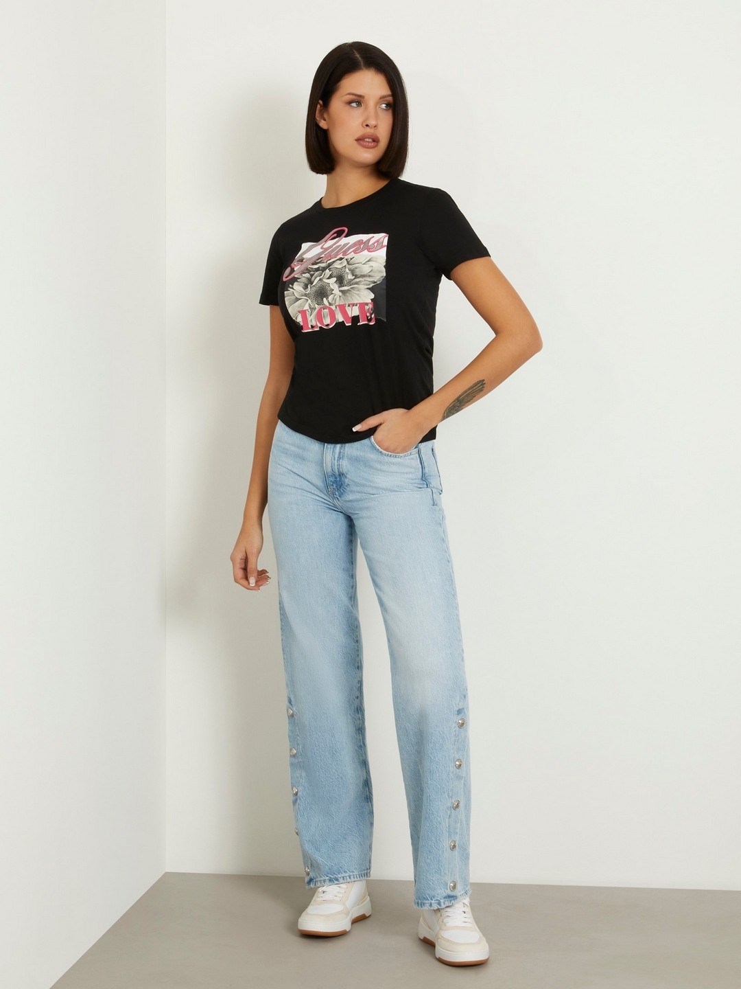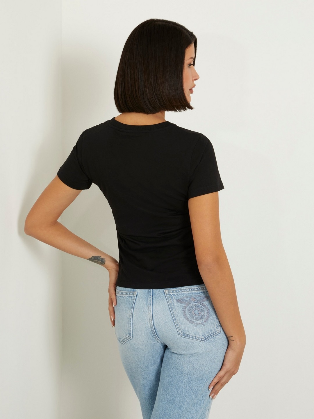 • Guess Women Black Printed Round Neck Short Sleeves T-Shirt