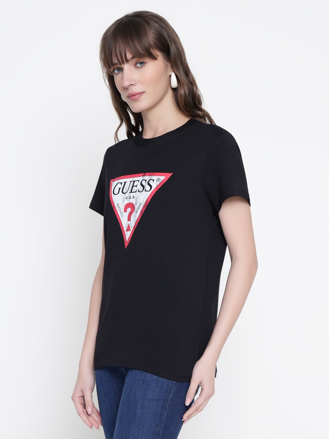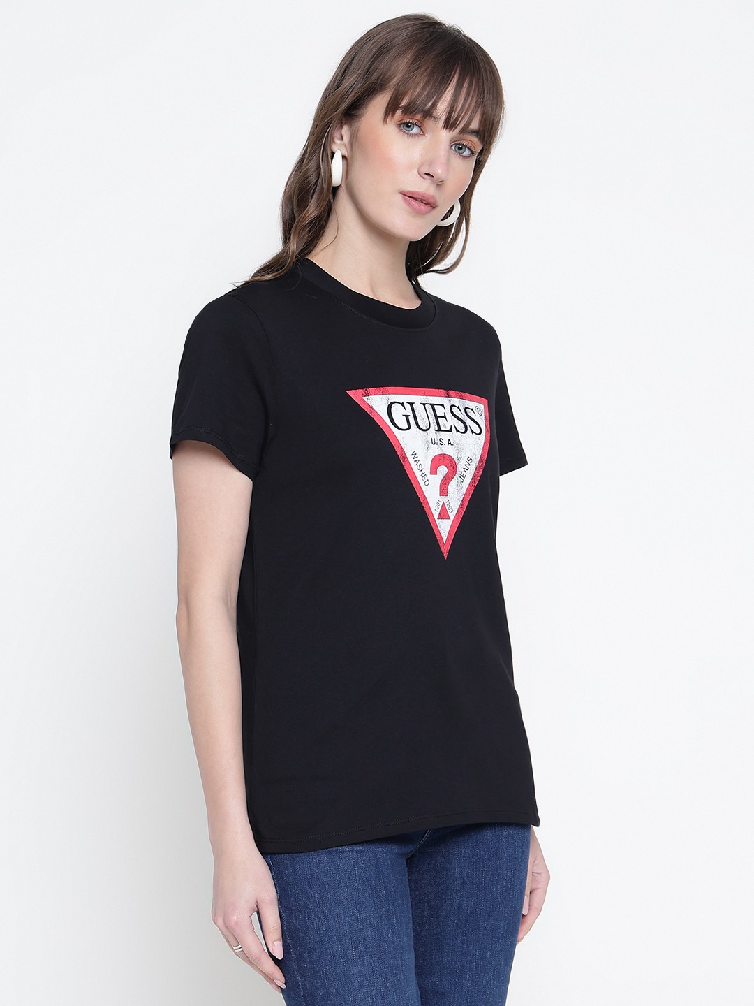 Elevate your casual wardrobe with our chic graphic print T-shirt, designed for the modern woman who values both comfort and style. This regular fit tee features a vibrant and eye-catching graphic print that adds a touch of personality to any outfit. Crafted from 100% premium cotton, it ensures breathability and softness, making it perfect for all-day wear. The short sleeves and classic round neck design offer a timeless silhouette that flatters every body type. With its slip-on closure, this T-shirt provides effortless dressing, ideal for those on-the-go moments. Whether you're pairing it with jeans for a laid-back look or dressing it up with a skirt for a more polished ensemble, this versatile piece is a must-have addition to your closet. Perfect for casual outings, weekend getaways, or simply lounging at home, this graphic print T-shirt combines style and comfort seamlessly, making it a staple in any fashion-forward wardrobe.